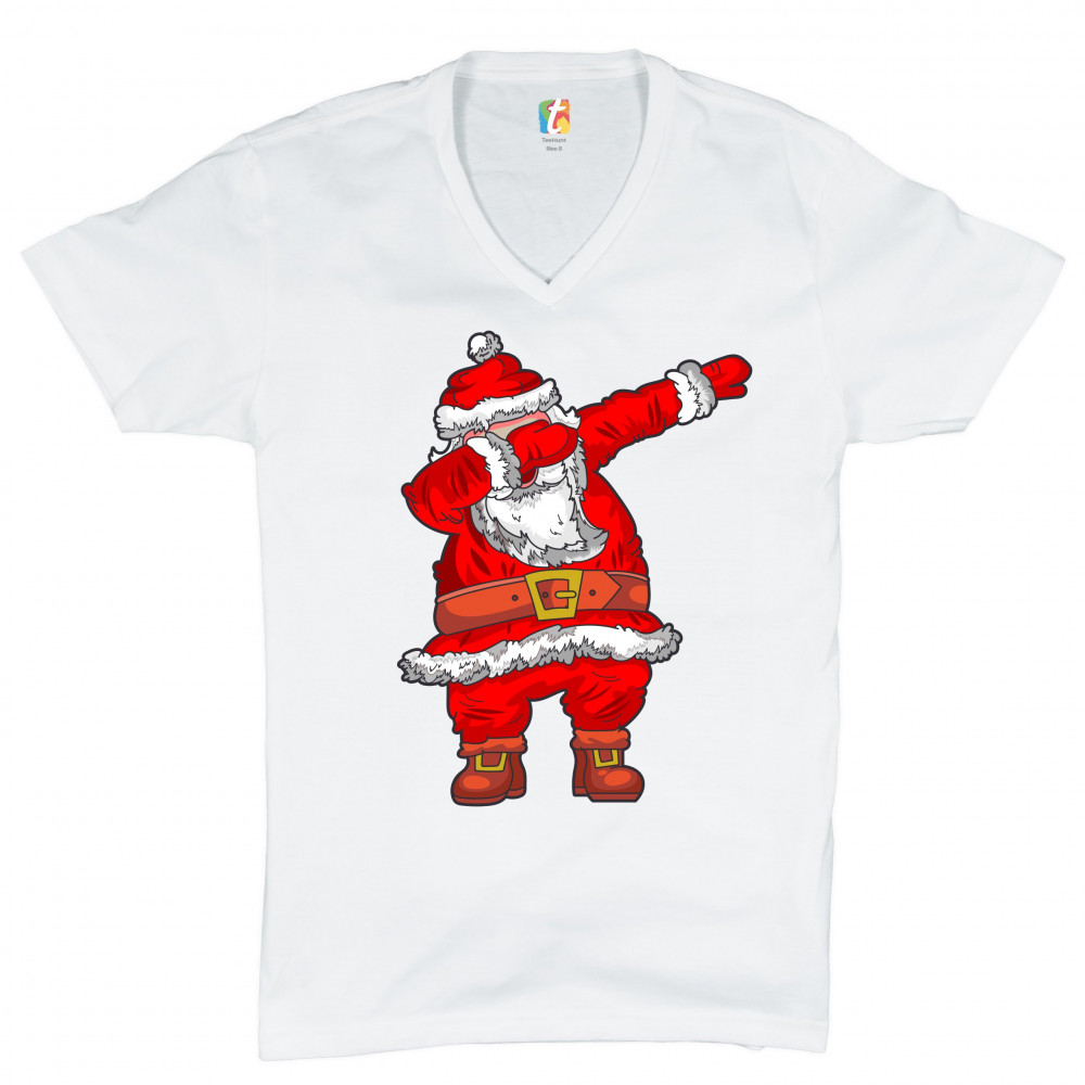 DABBING SANTA CLAUS v-neck t-shirt merry christmas funny dab dance x-mas tee white