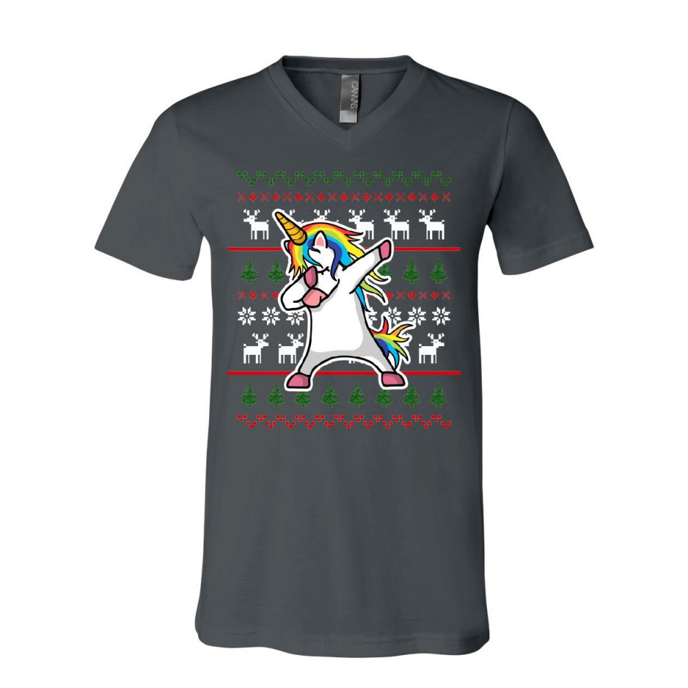 DABBING UNICORN ugly sweater v-neck t-shirt christmas xmas dab rudolph tee charcoal