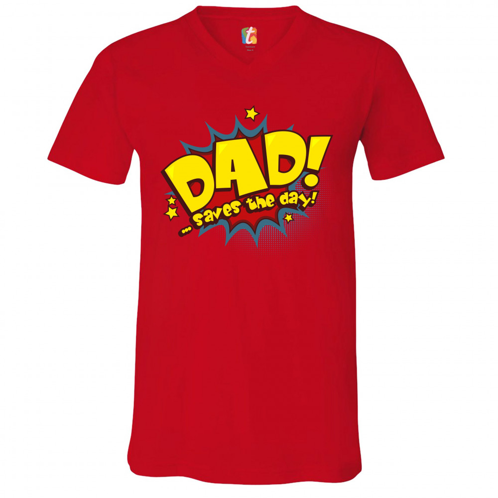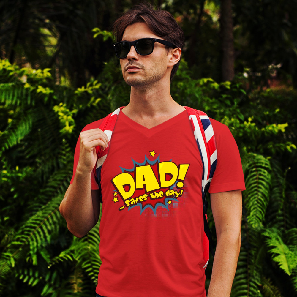 DAD SAVES THE DAY! v-neck t-shirt father's day world's greatest dad tee red