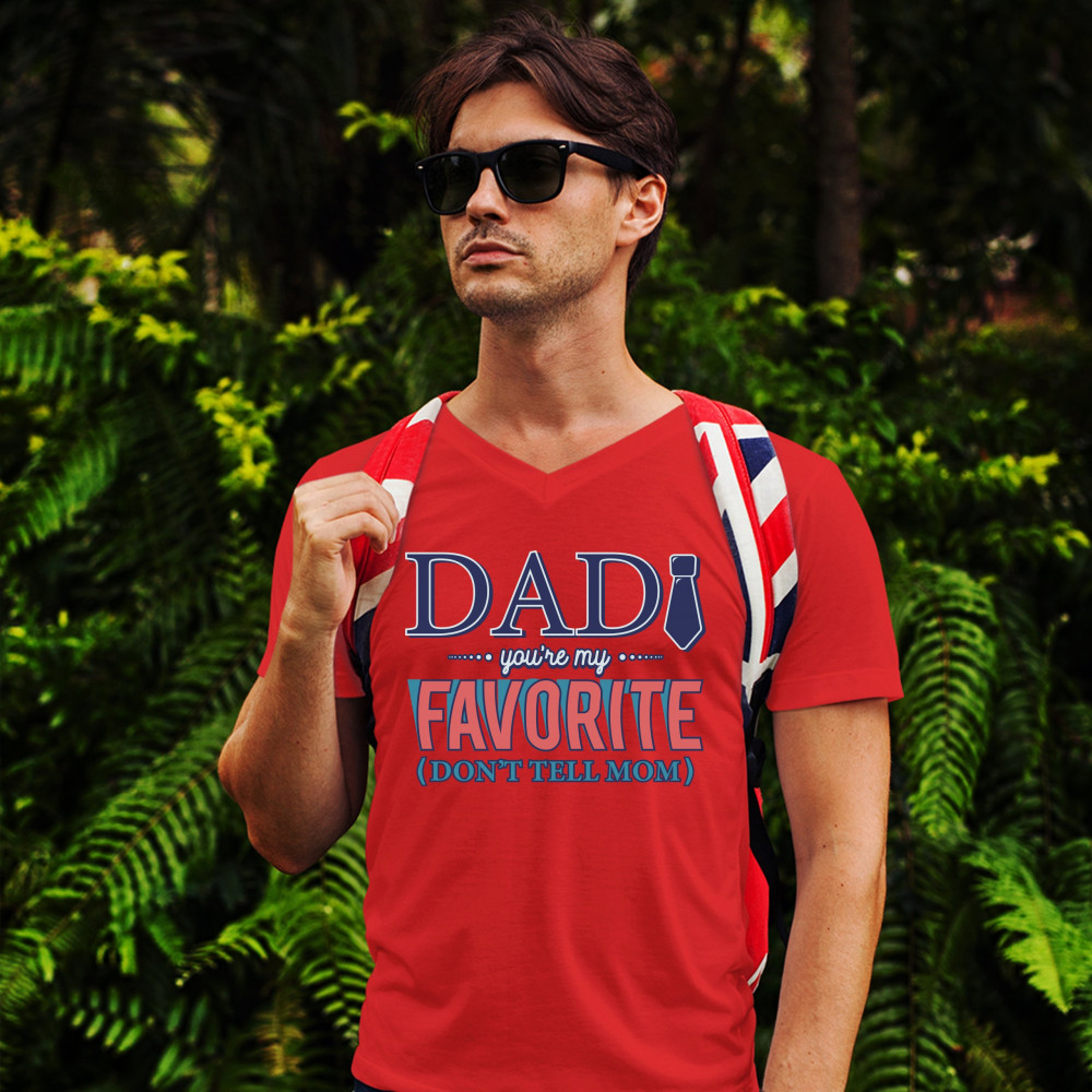 DAD YOU'RE MY FAVORITE (DON'T TELL MOM) v-neck t-shirt daddy father's day tee red