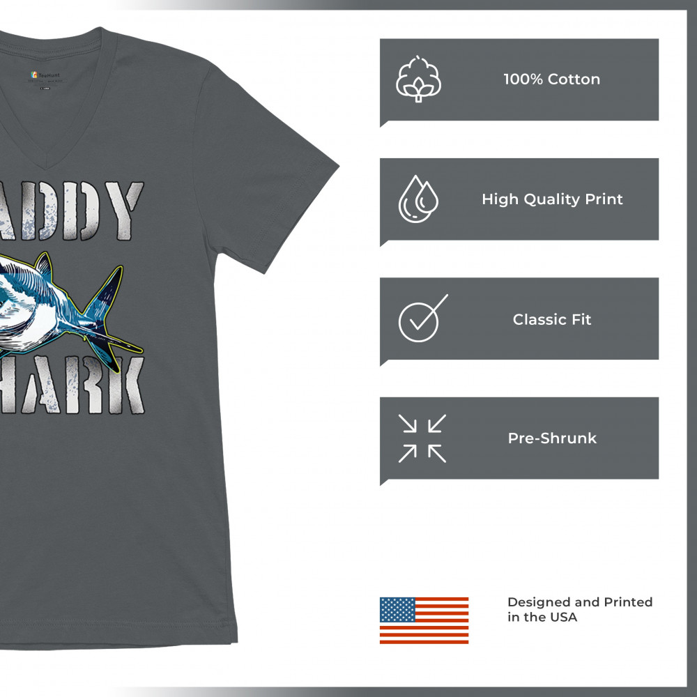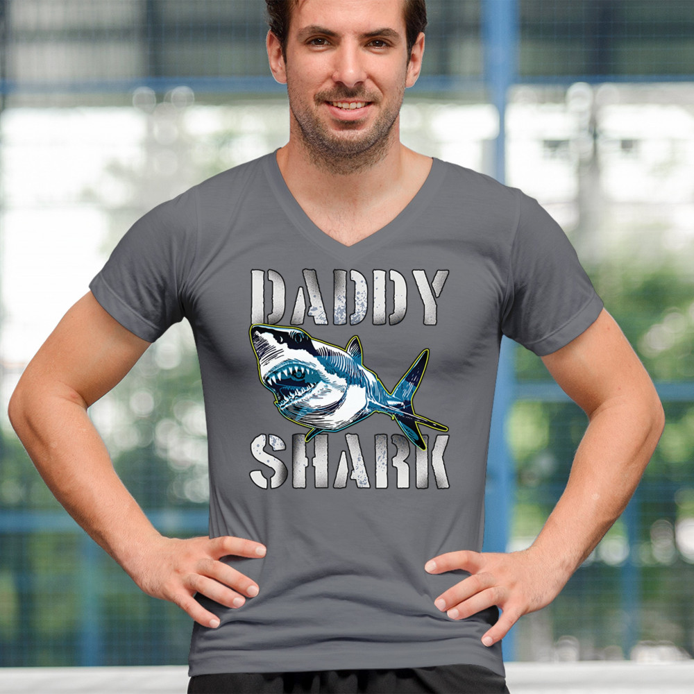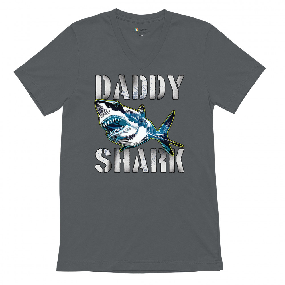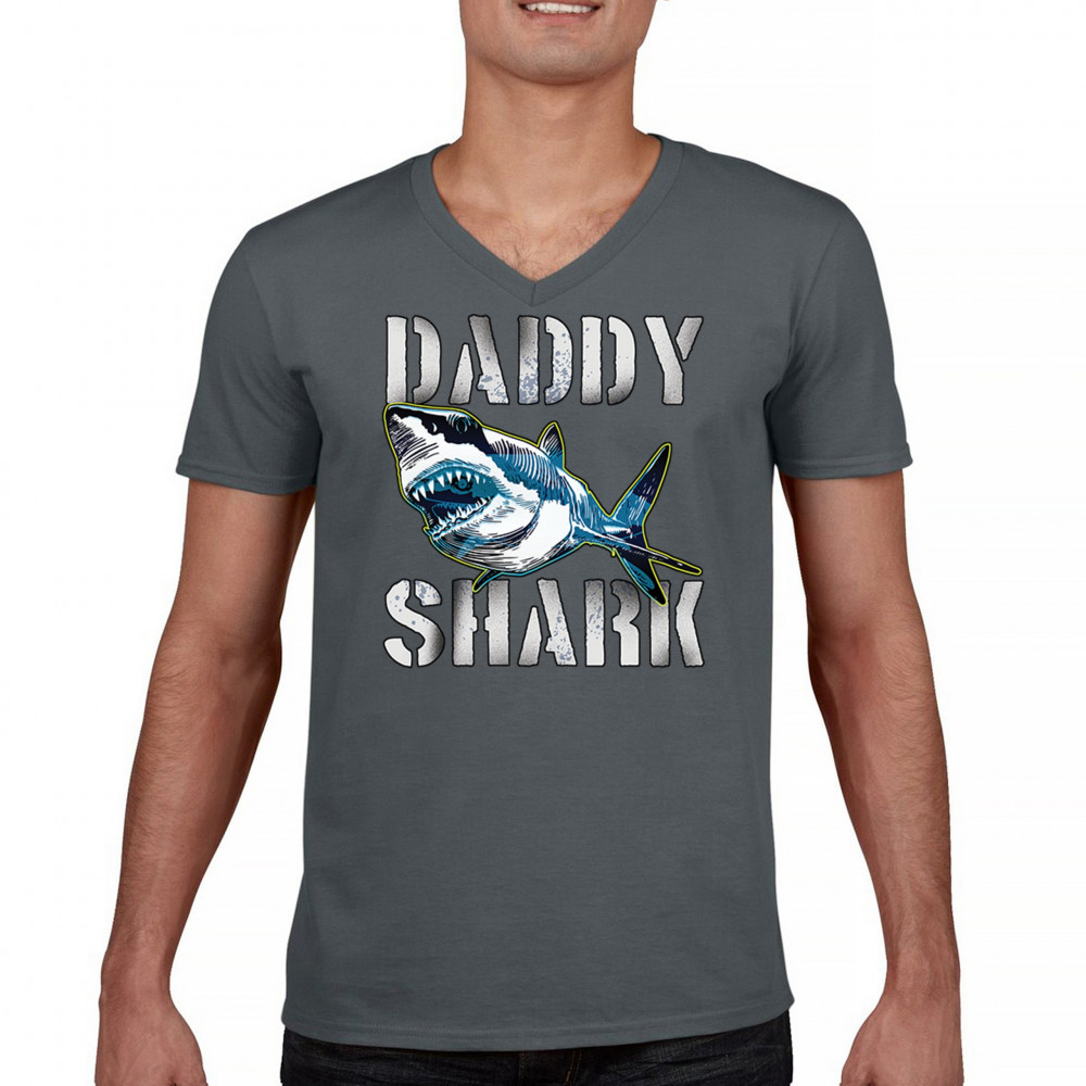 DADDY SHARK FUNNY FATHER'S DAY v-neck t-shirt funny dad joke grandpa papa tee charcoal