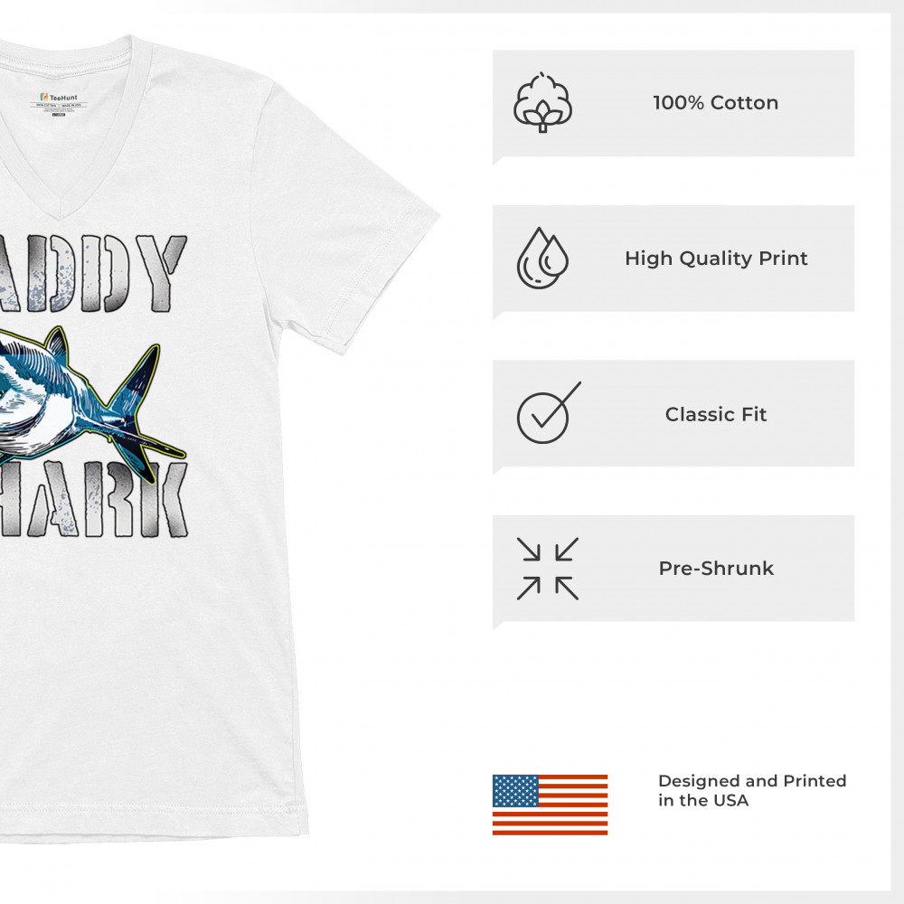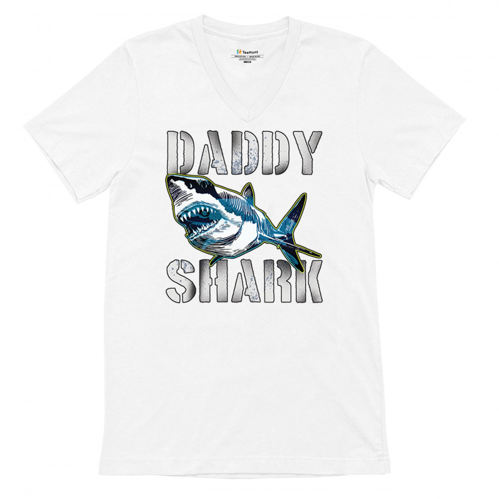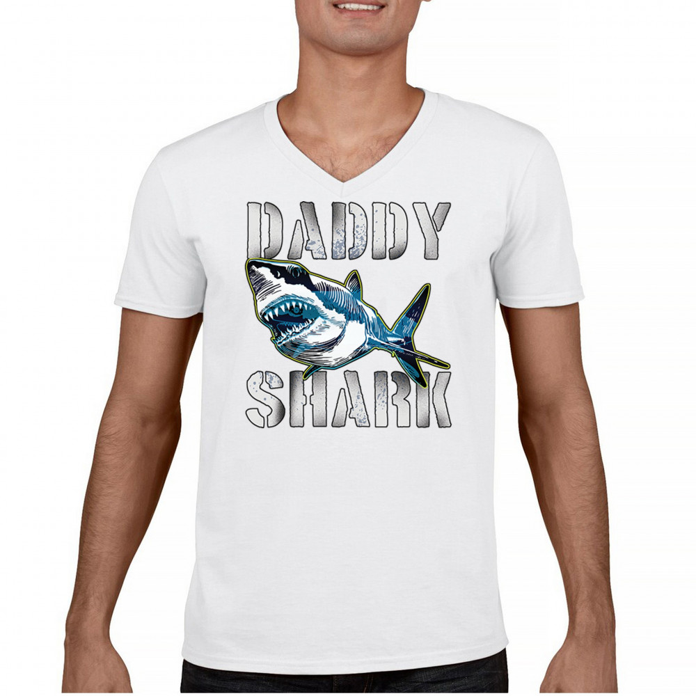 DADDY SHARK FUNNY FATHER'S DAY v-neck t-shirt funny dad joke grandpa papa tee white