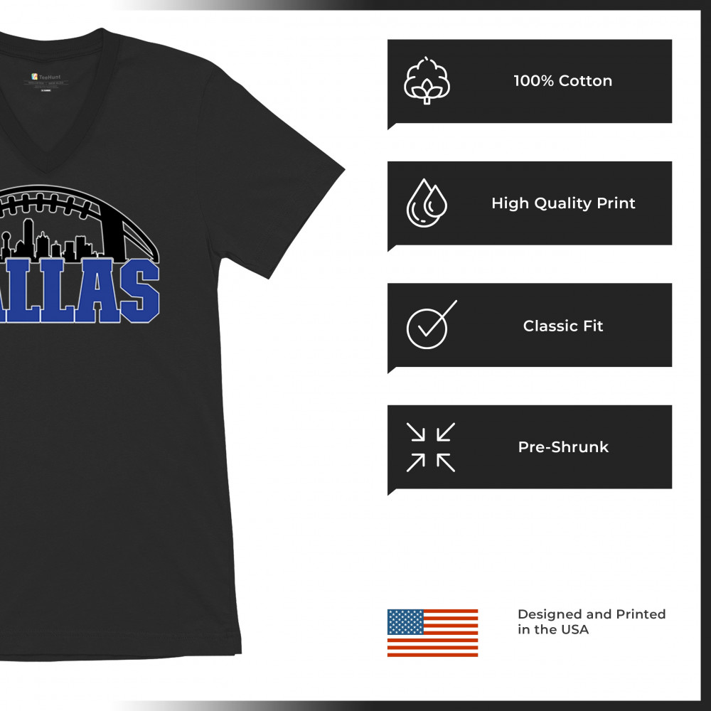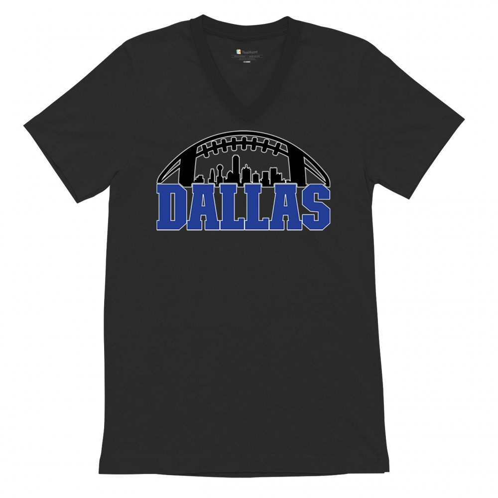 DALLAS SKYLINE FOOTBALL v-neck t-shirt texas fantasy bleed blue game day tee black