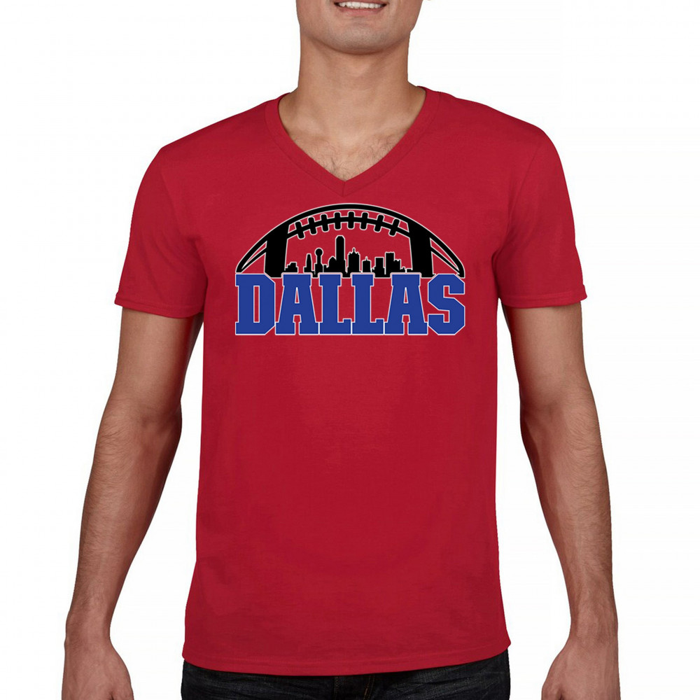 Show off your Dallas pride with a bold football-themed design featuring the city's skyline. Perfect for game days, tailgates, and passionate fans.