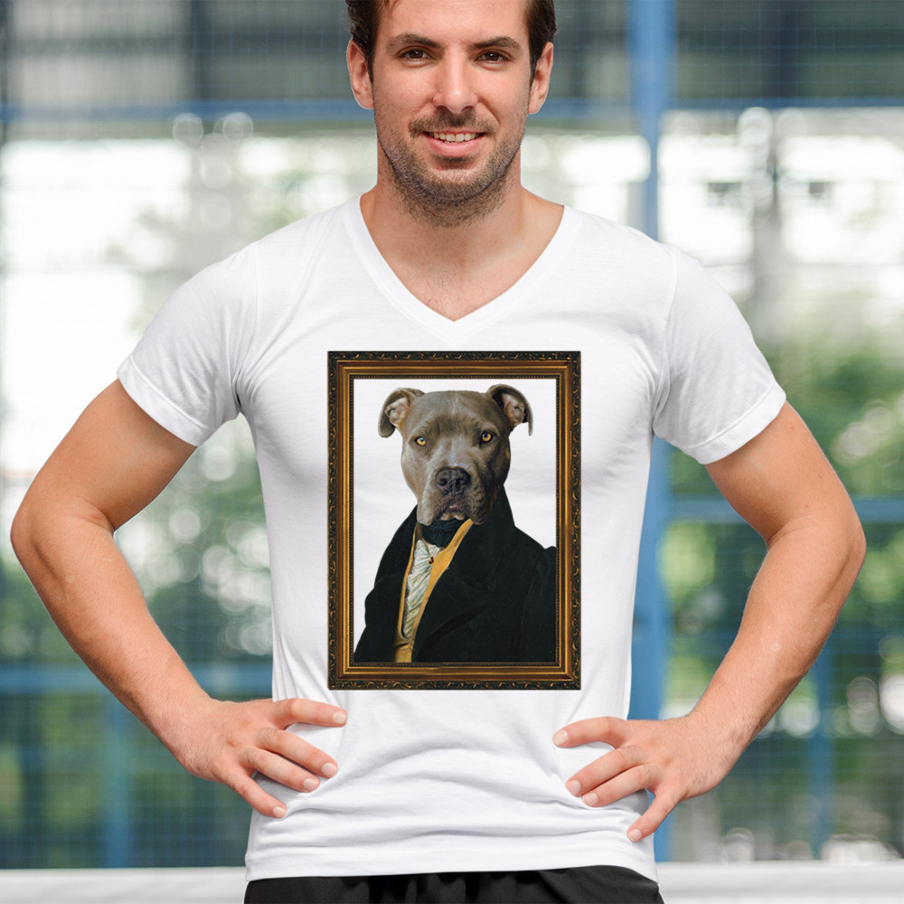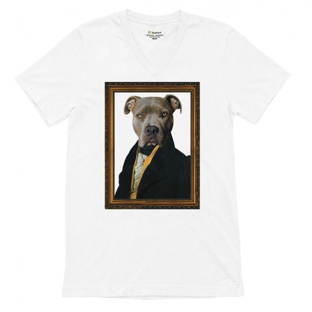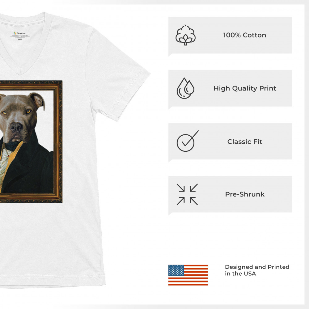 Unique pit bull portrait in 18th-century attire, blending humor and elegance for pet lovers and history enthusiasts. Perfect for home or office decor.
