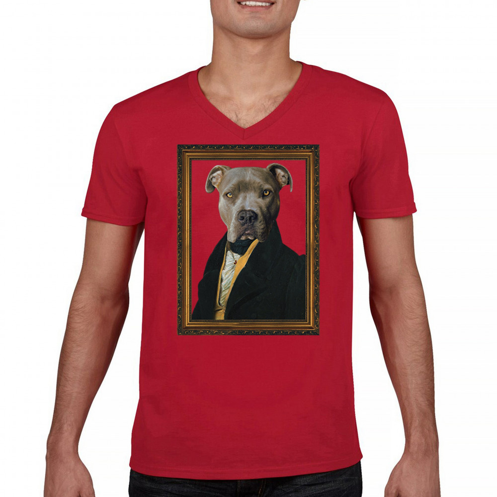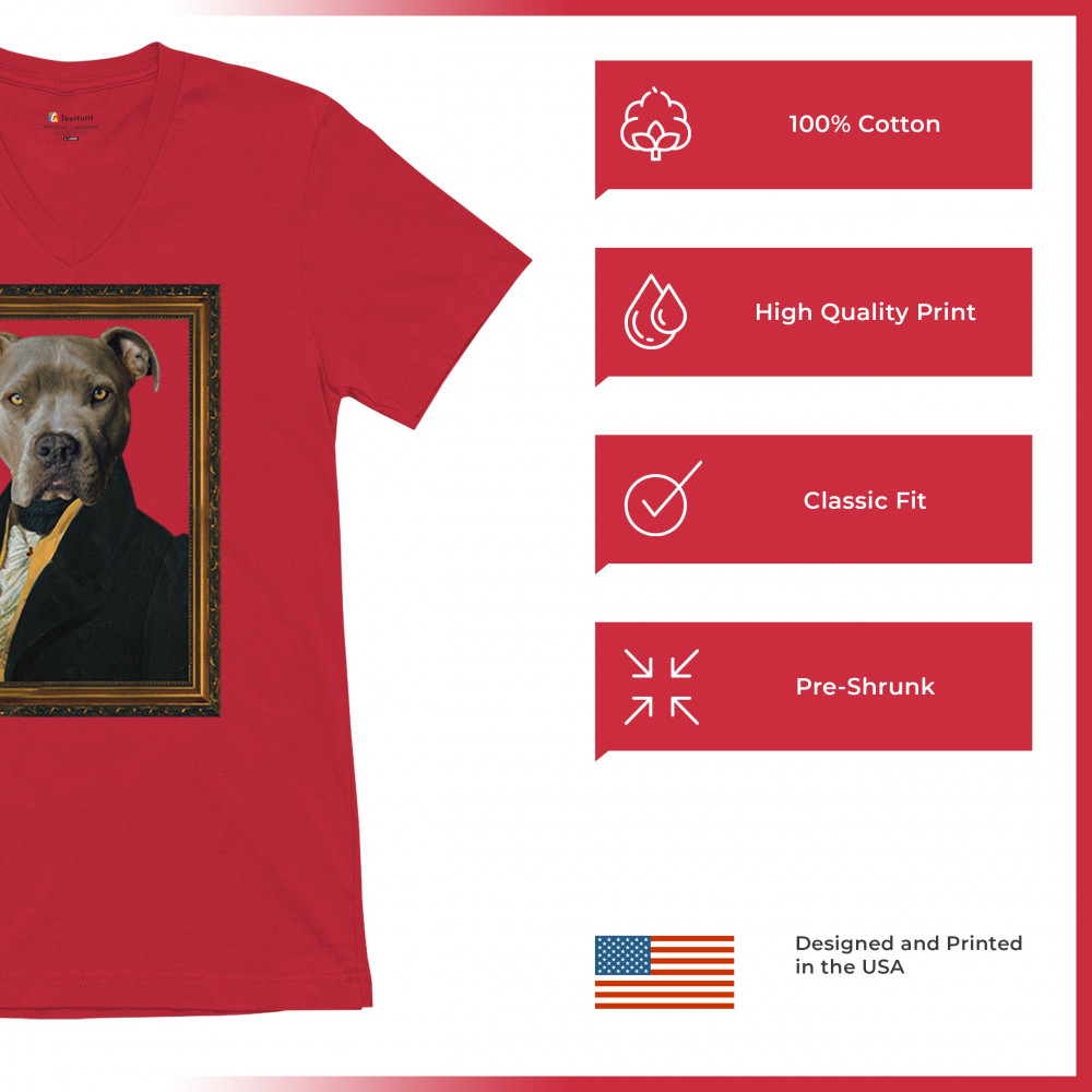 Unique pit bull portrait in 18th-century attire, blending humor and elegance for pet lovers and history enthusiasts. Perfect for home or office decor.