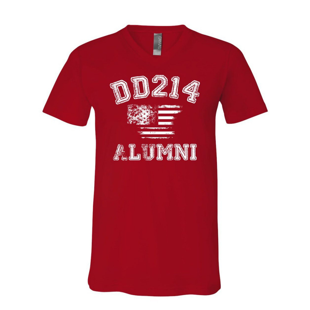 DD214 ALUMNI distressed american flag v-neck t-shirt military veteran tee red