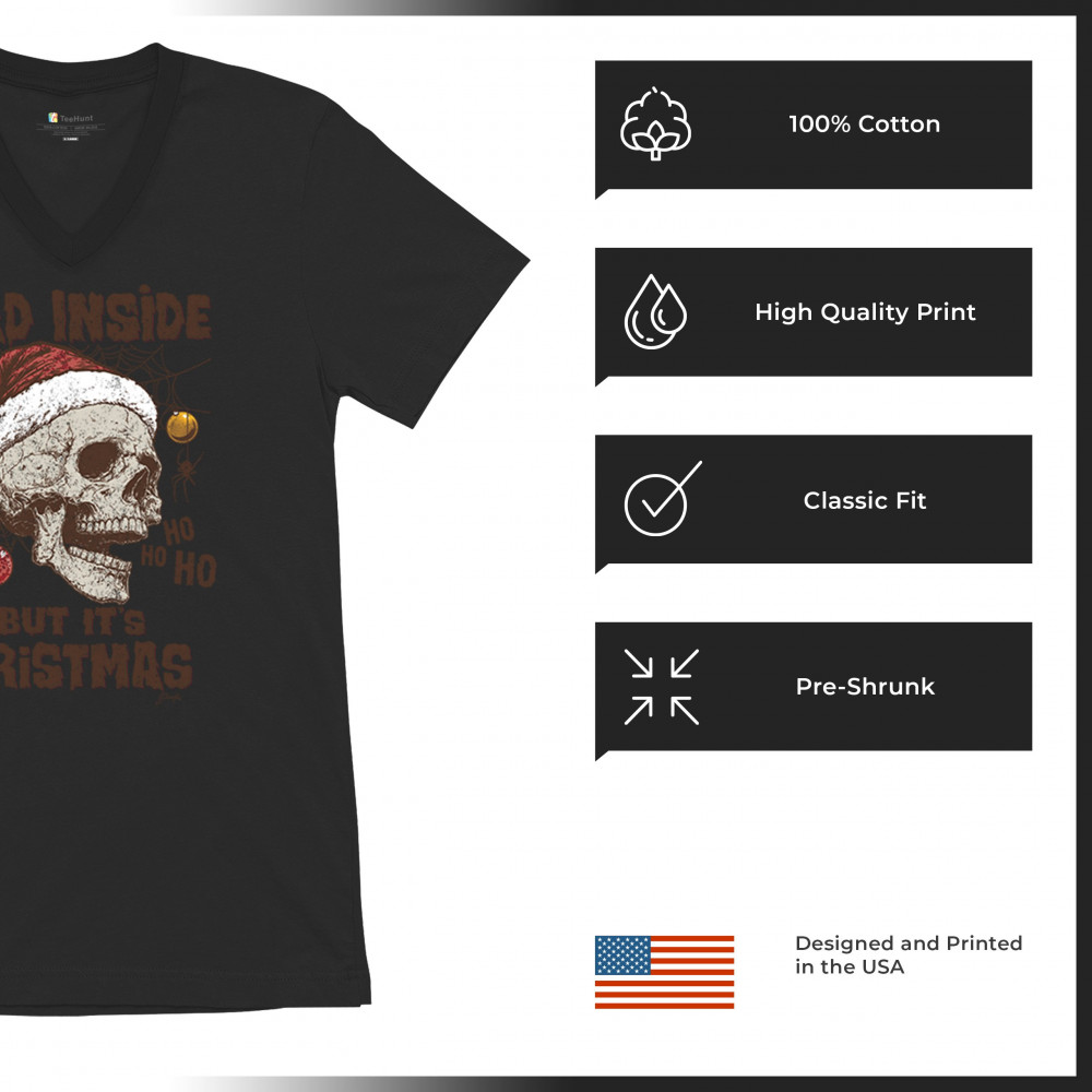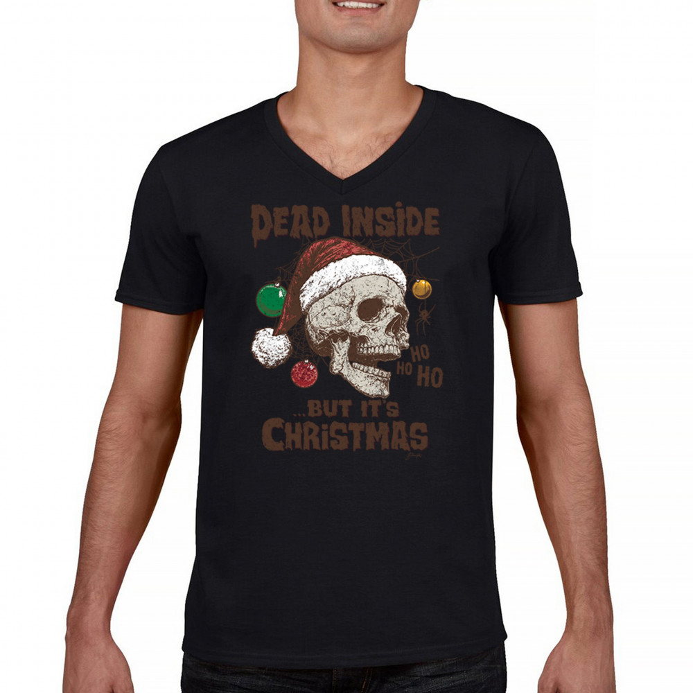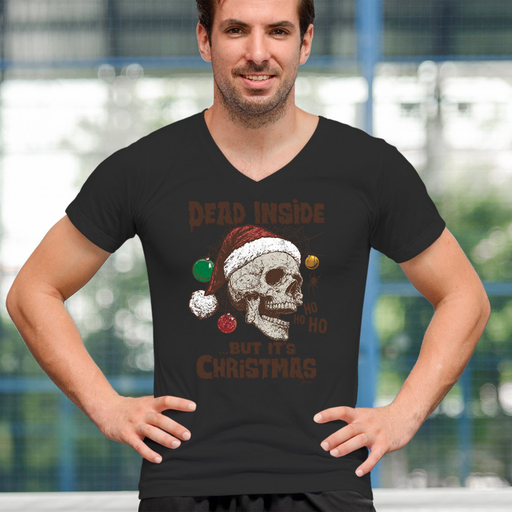 DEAD INSIDE BUT IT'S CHRISTMAS men's v-neck t-shirt xmas skull sarcastic humor black