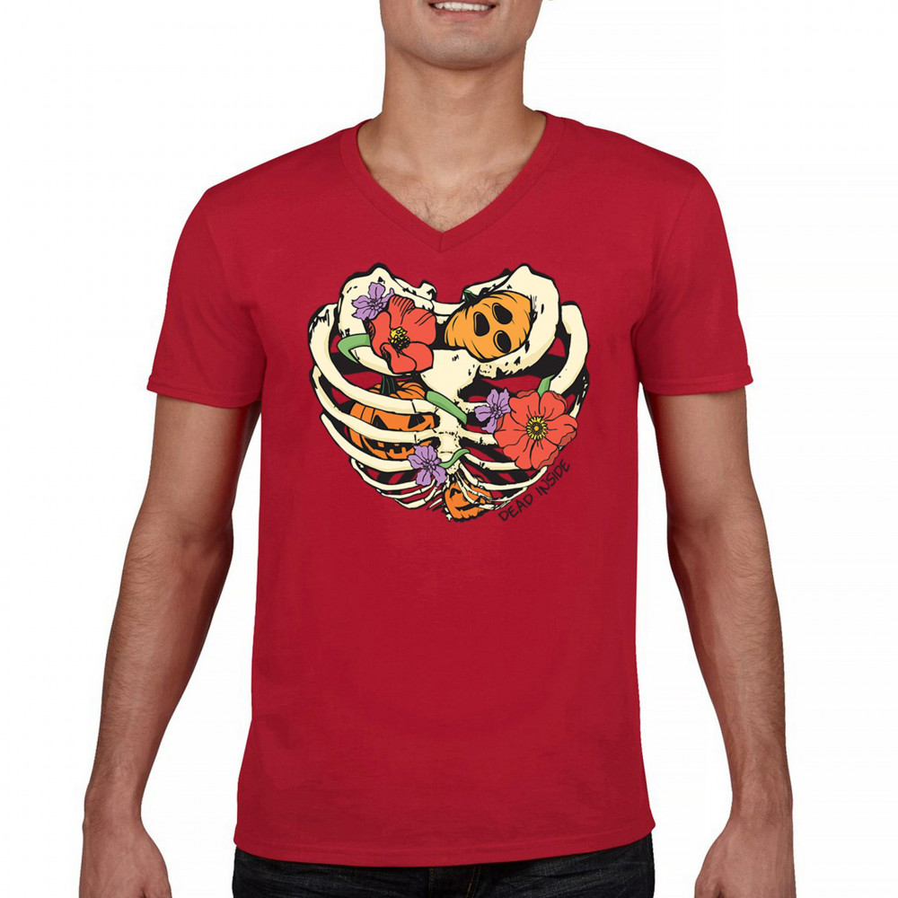 Celebrate Halloween with a quirky and cute design featuring a skeleton ribcage filled with pumpkins and flowers. Perfect for spooky season lovers!