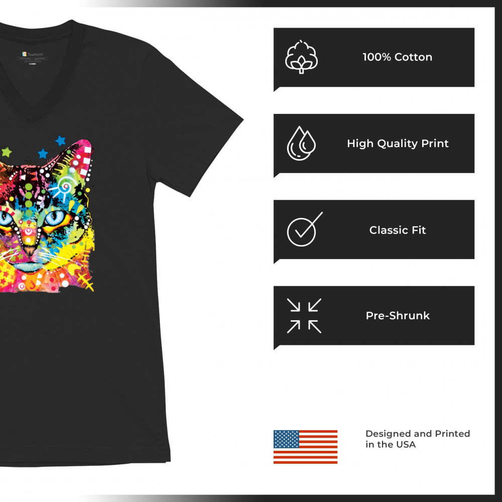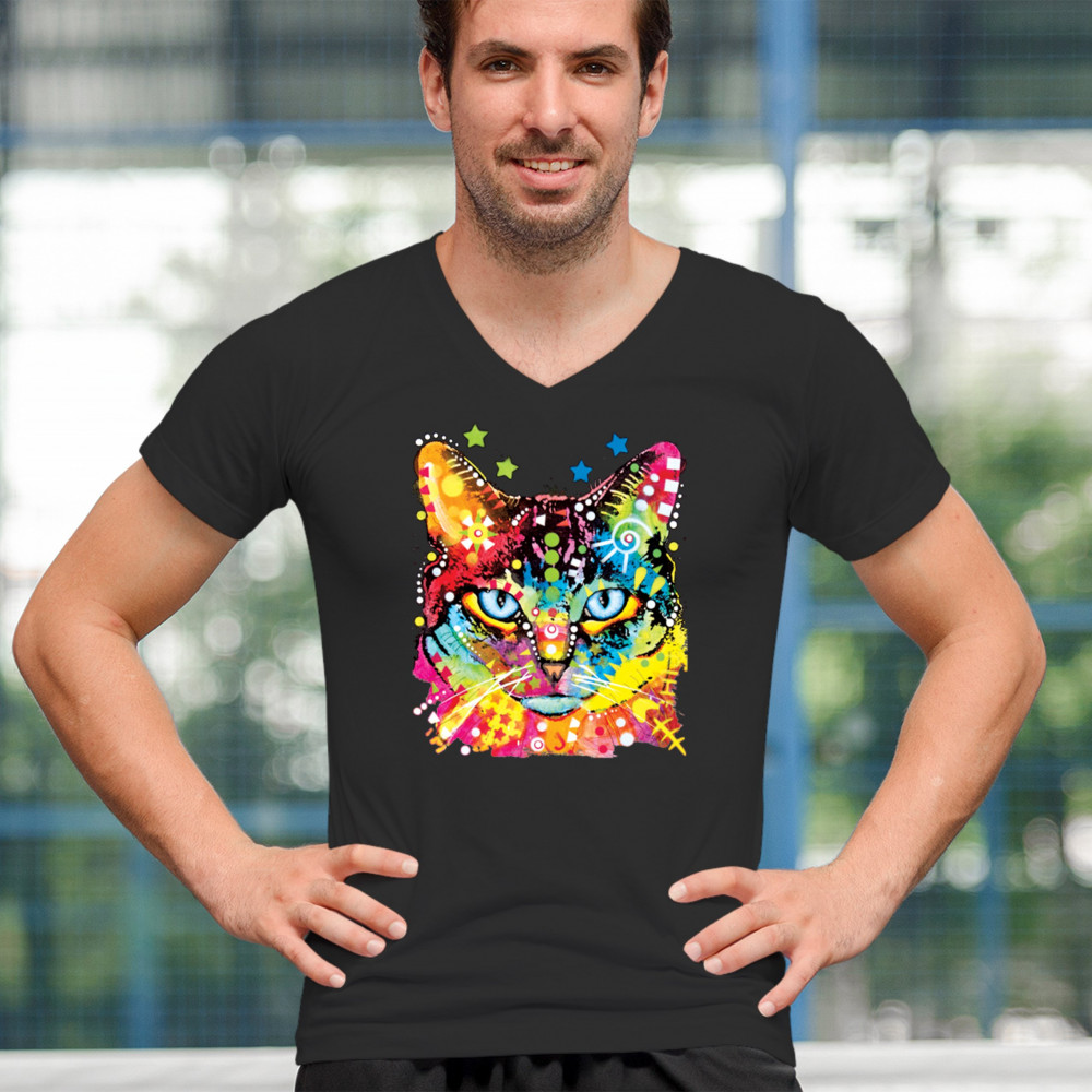 DEAN RUSSO BLUE EYES CAT v-neck t-shirt colorful cute kitten pet tee black