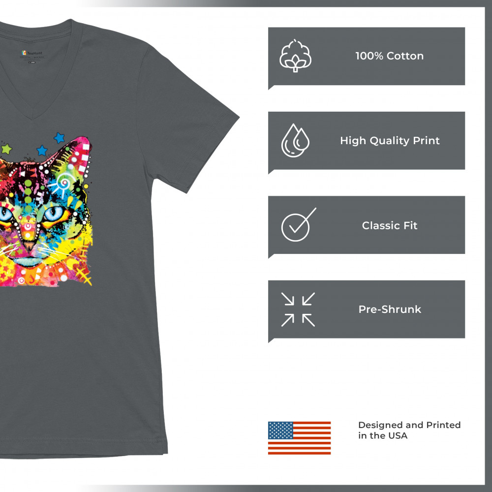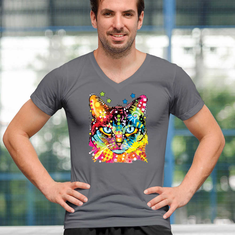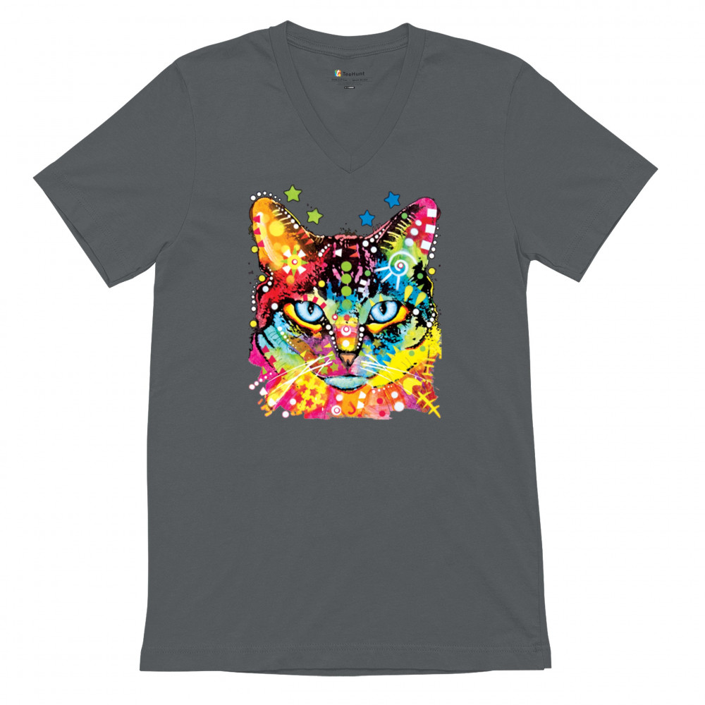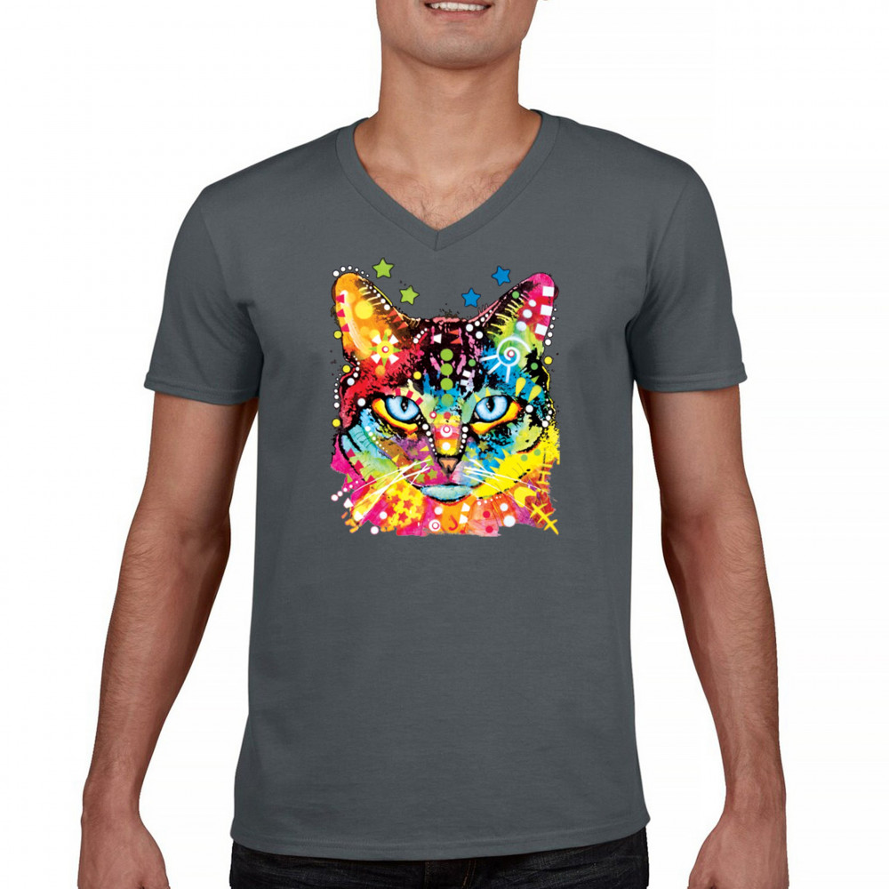 DEAN RUSSO BLUE EYES CAT v-neck t-shirt colorful cute kitten pet tee charcoal