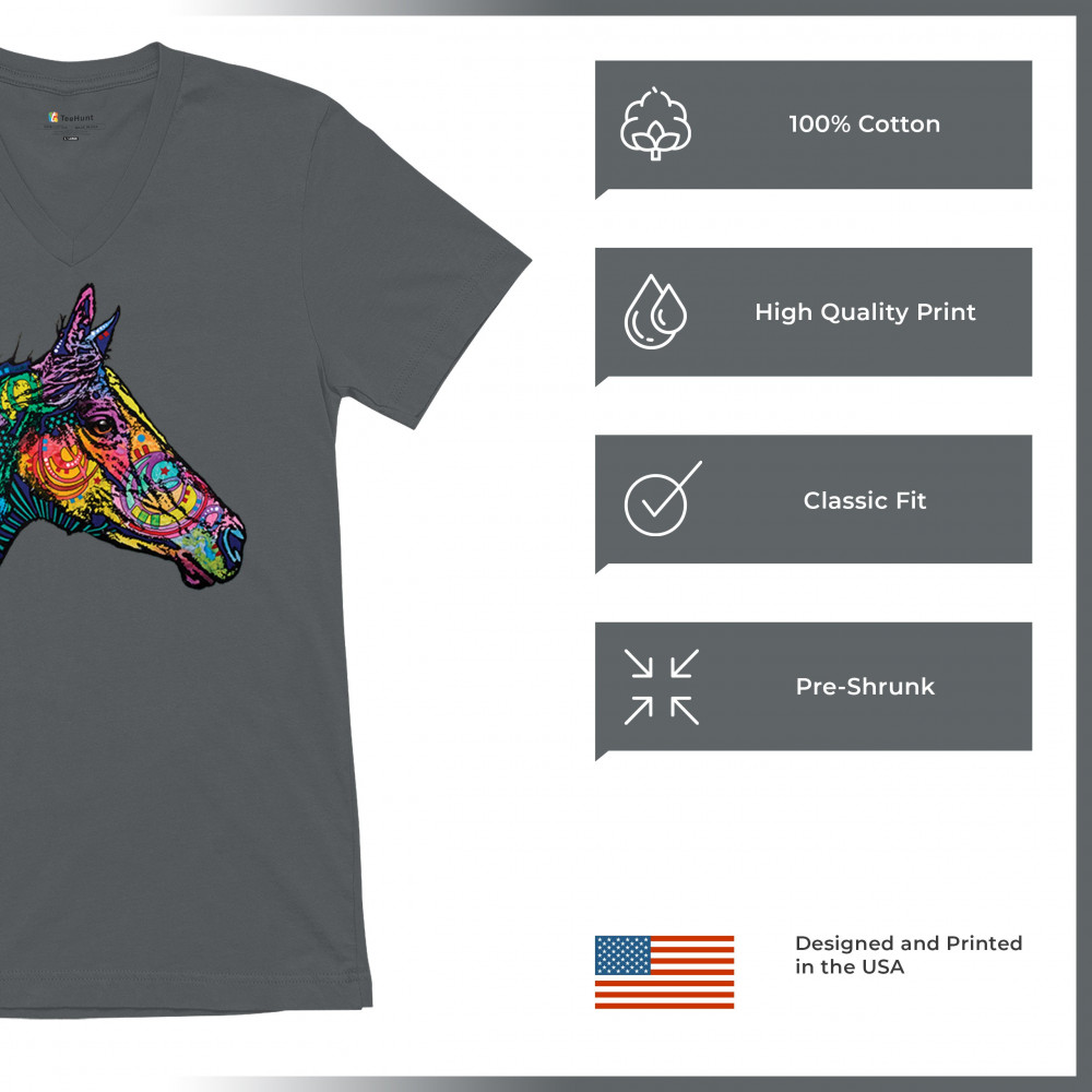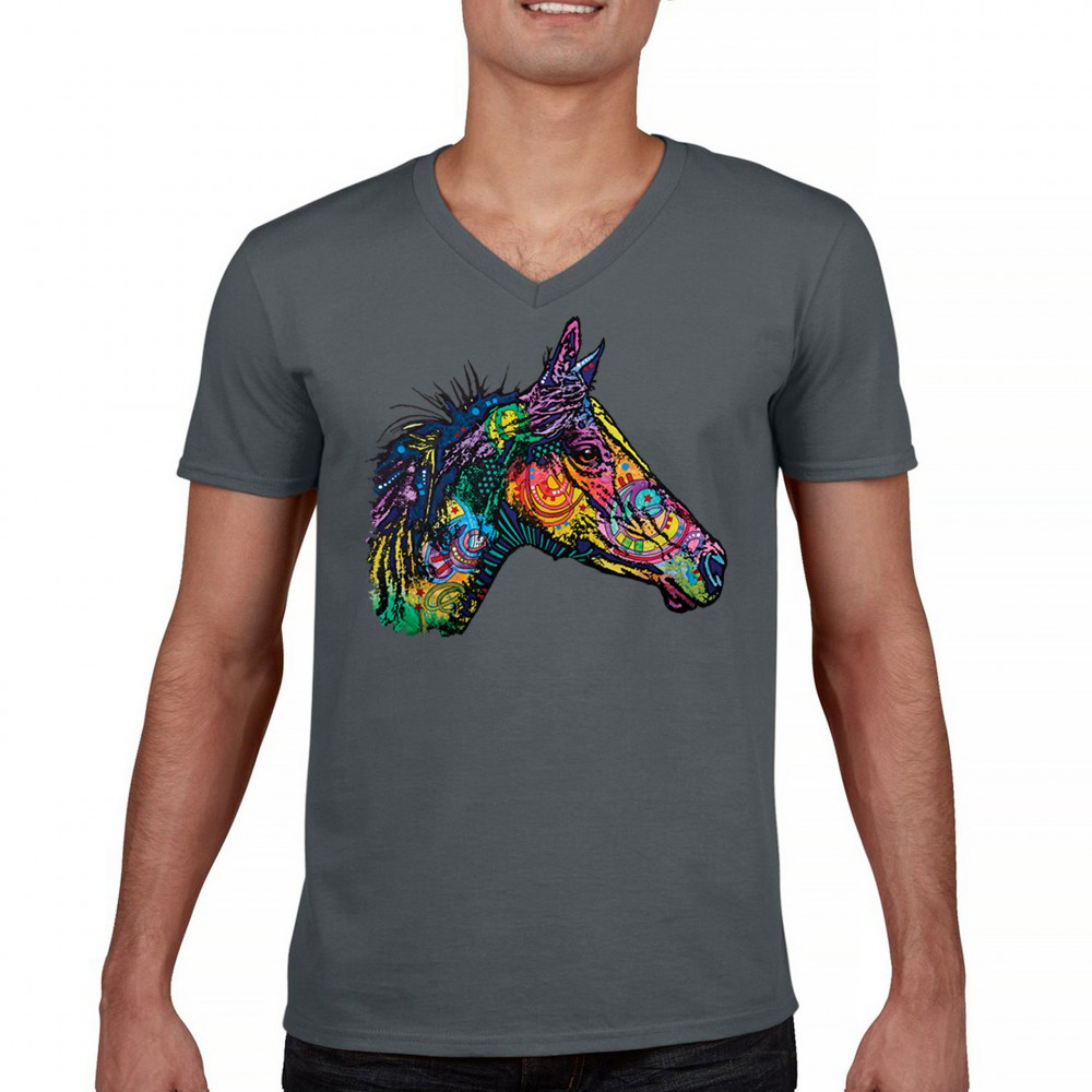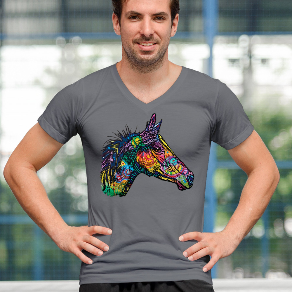DEAN RUSSO COLORFUL HORSE v-neck t-shirt neon mosaic wild mustang animal tee charcoal