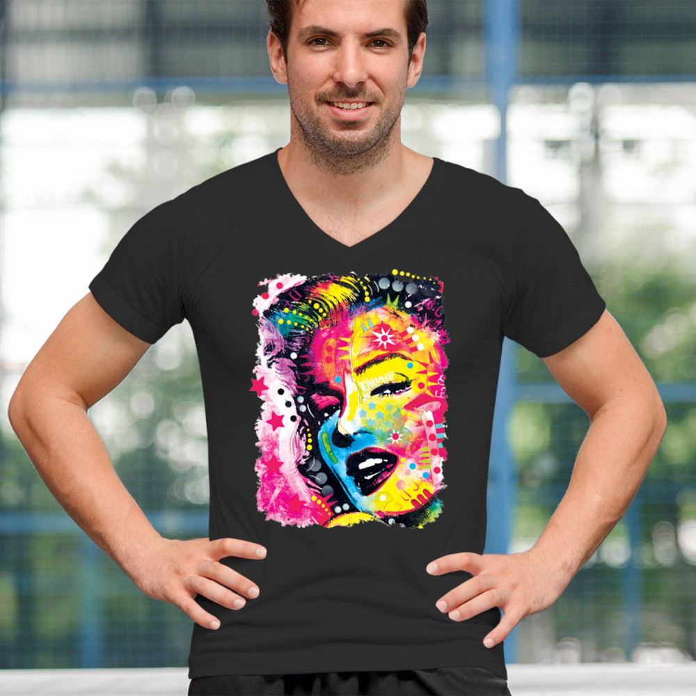 DEAN RUSSO COLORFUL MARILYN v-neck t-shirt neon hot symbol starlet tee black