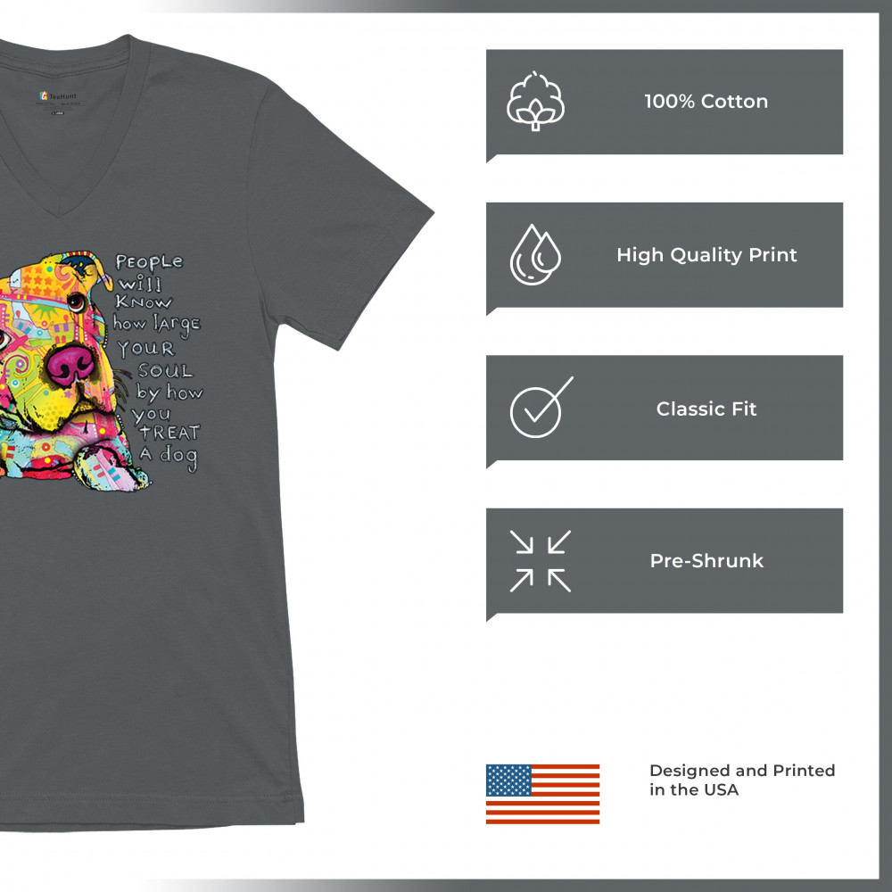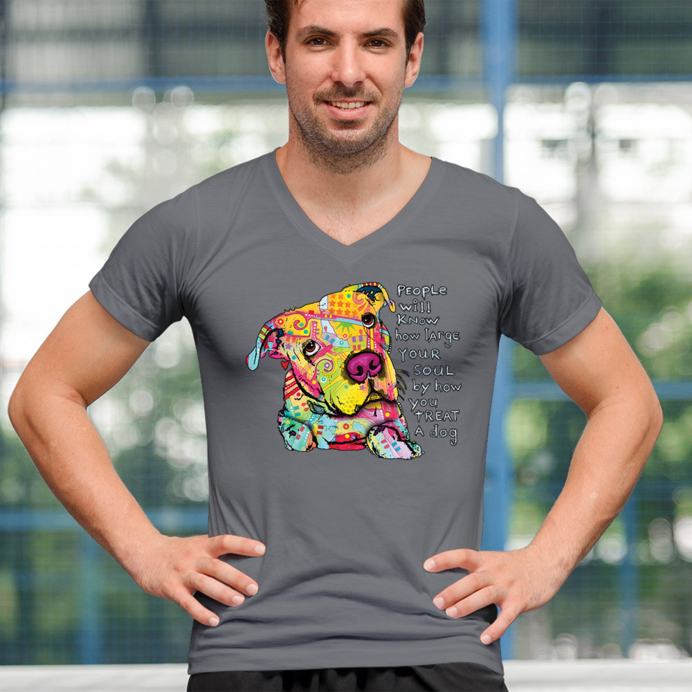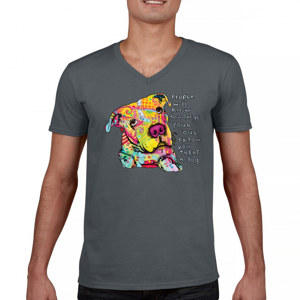 DEAN RUSSO COLORFUL NEON DOG v-neck t-shirt how large your soul is pet tee charcoal
