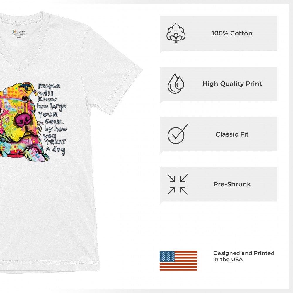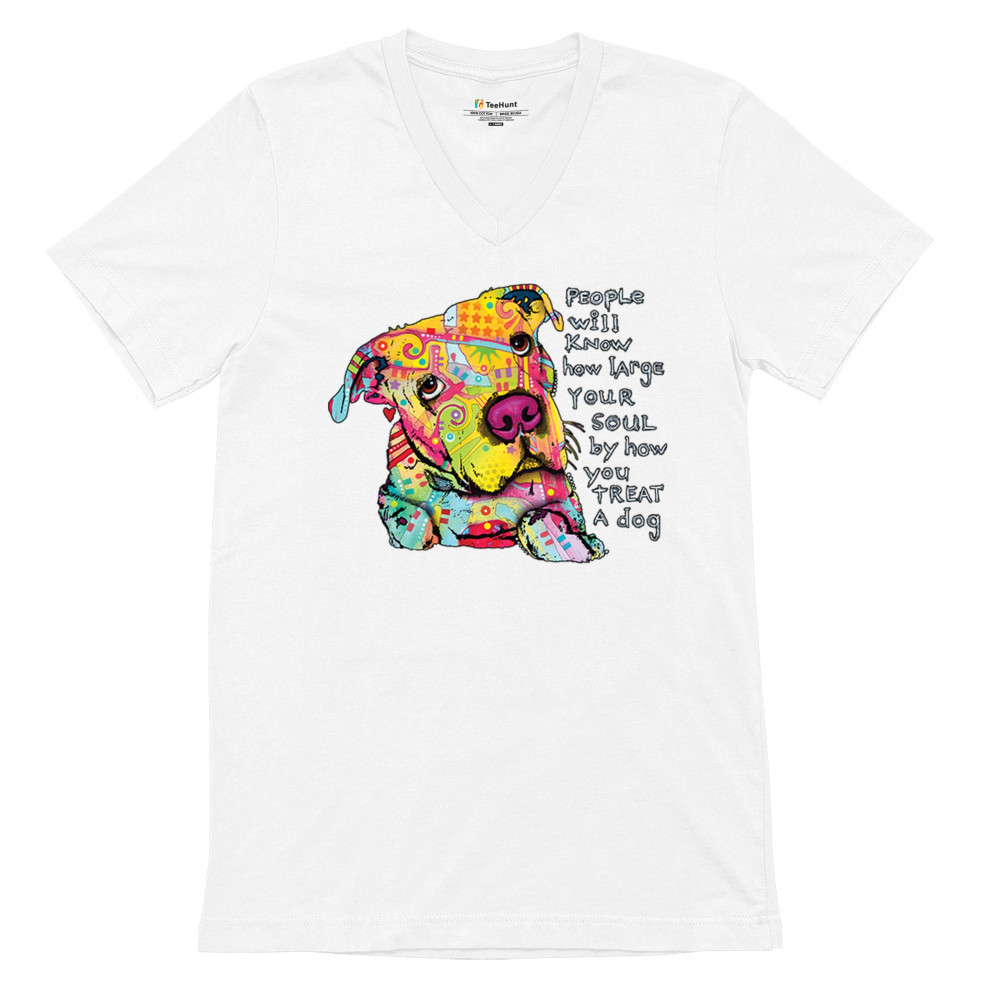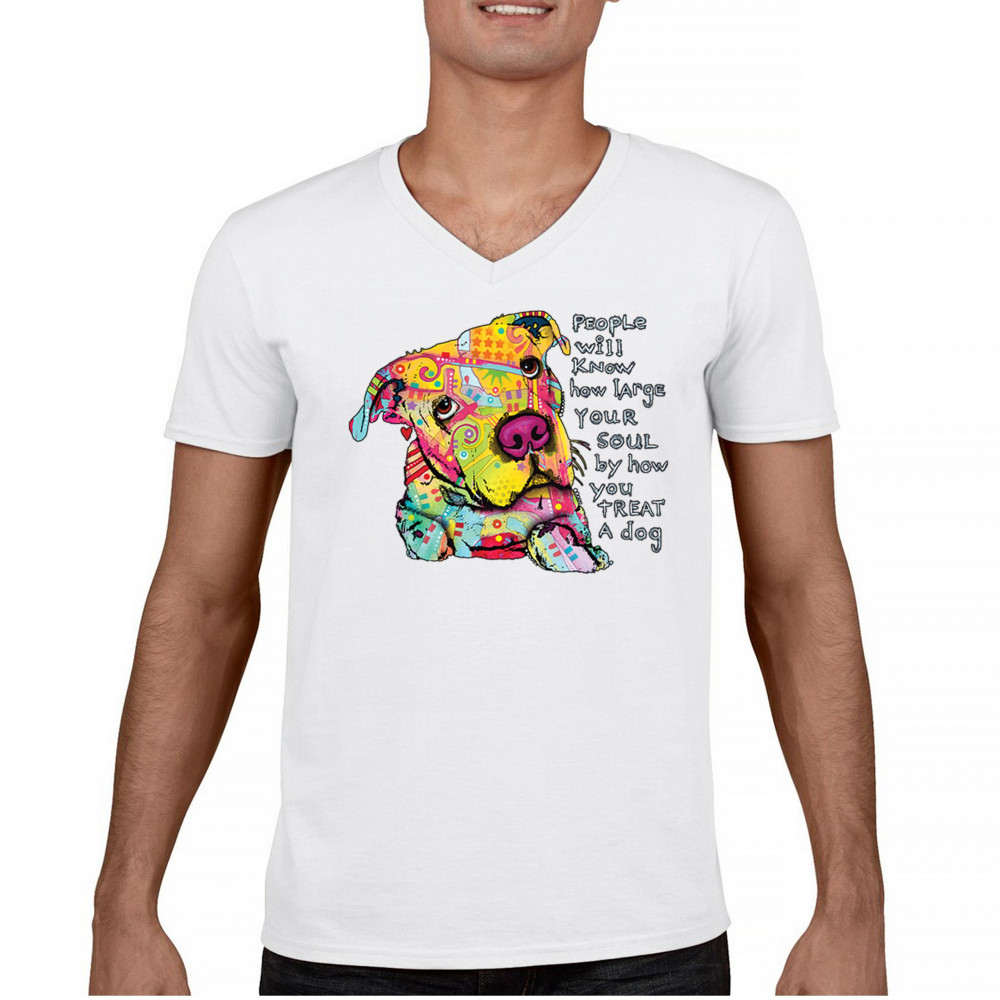 DEAN RUSSO COLORFUL NEON DOG v-neck t-shirt how large your soul is pet tee white