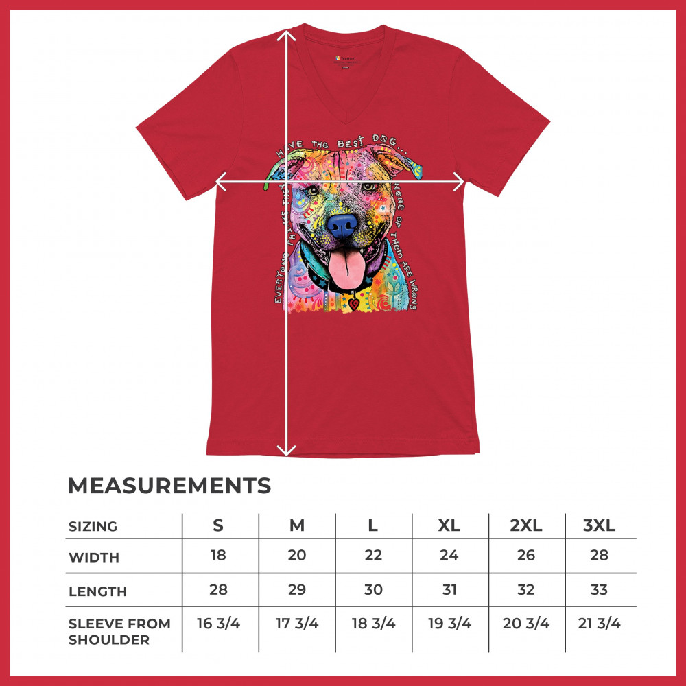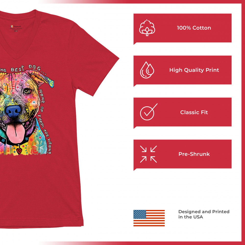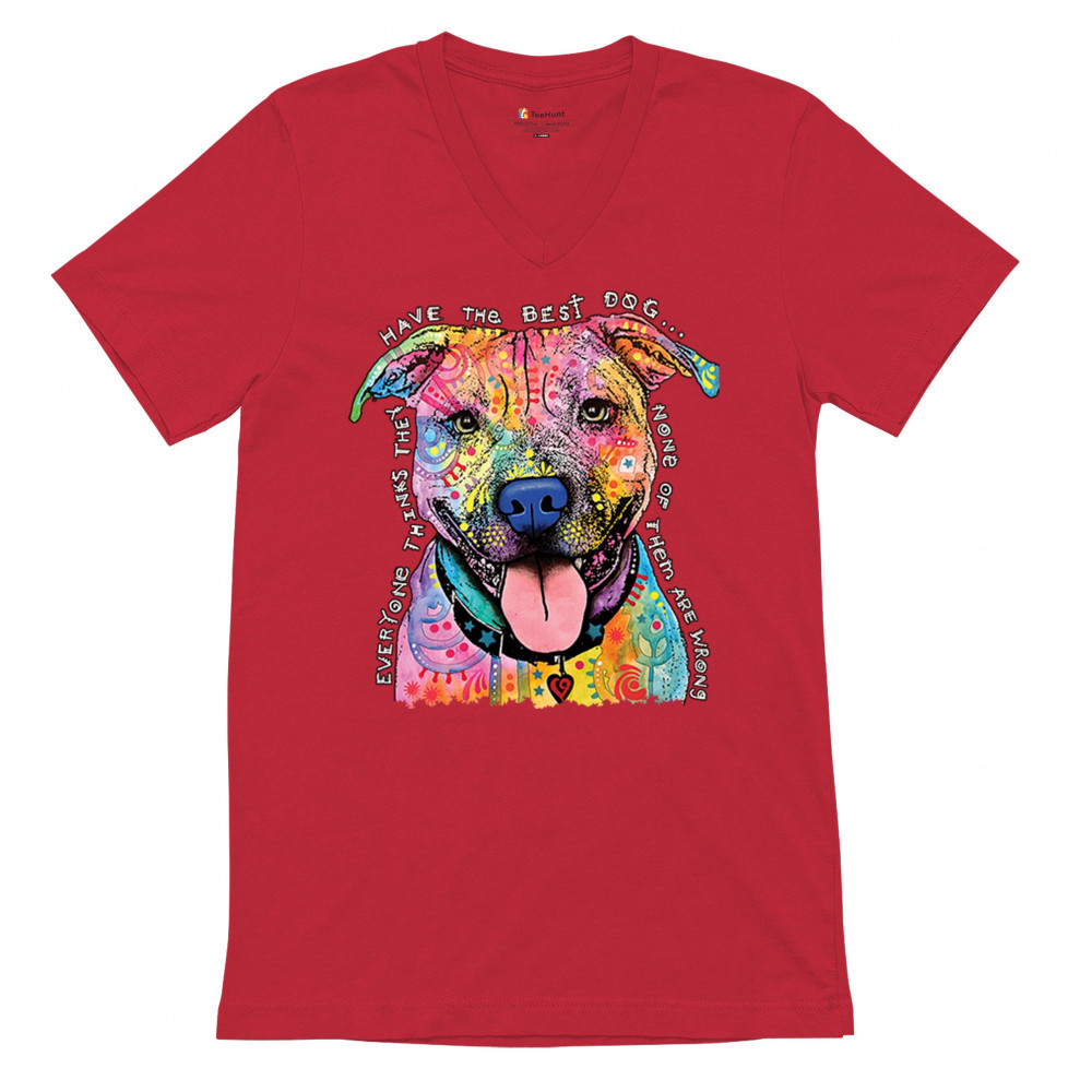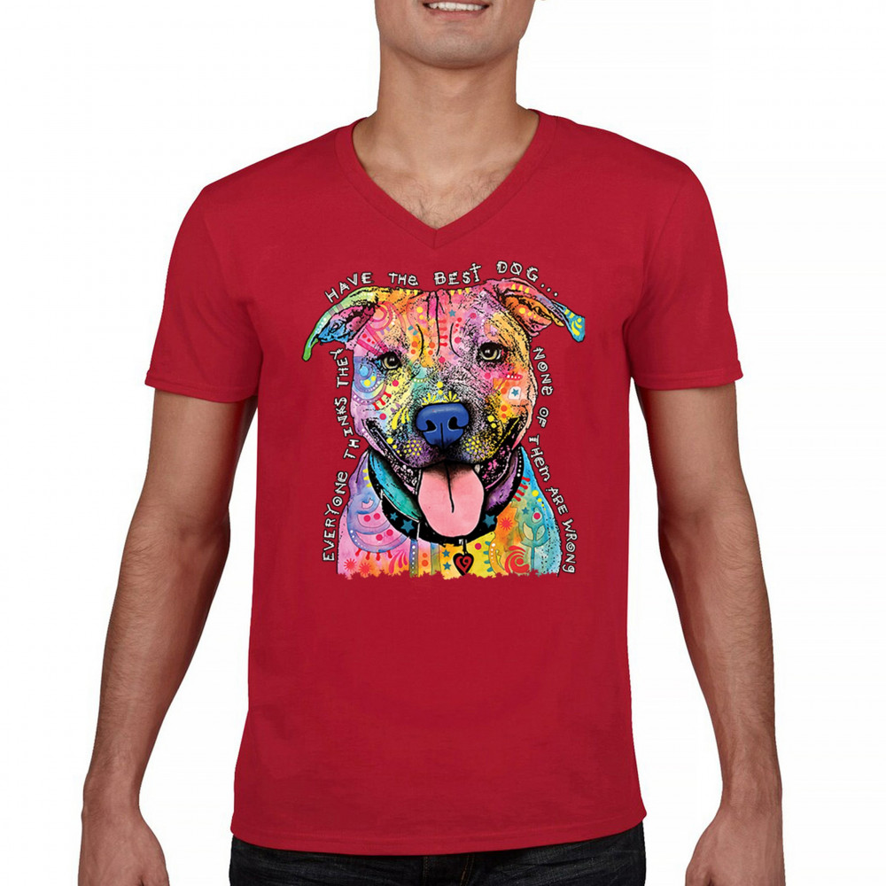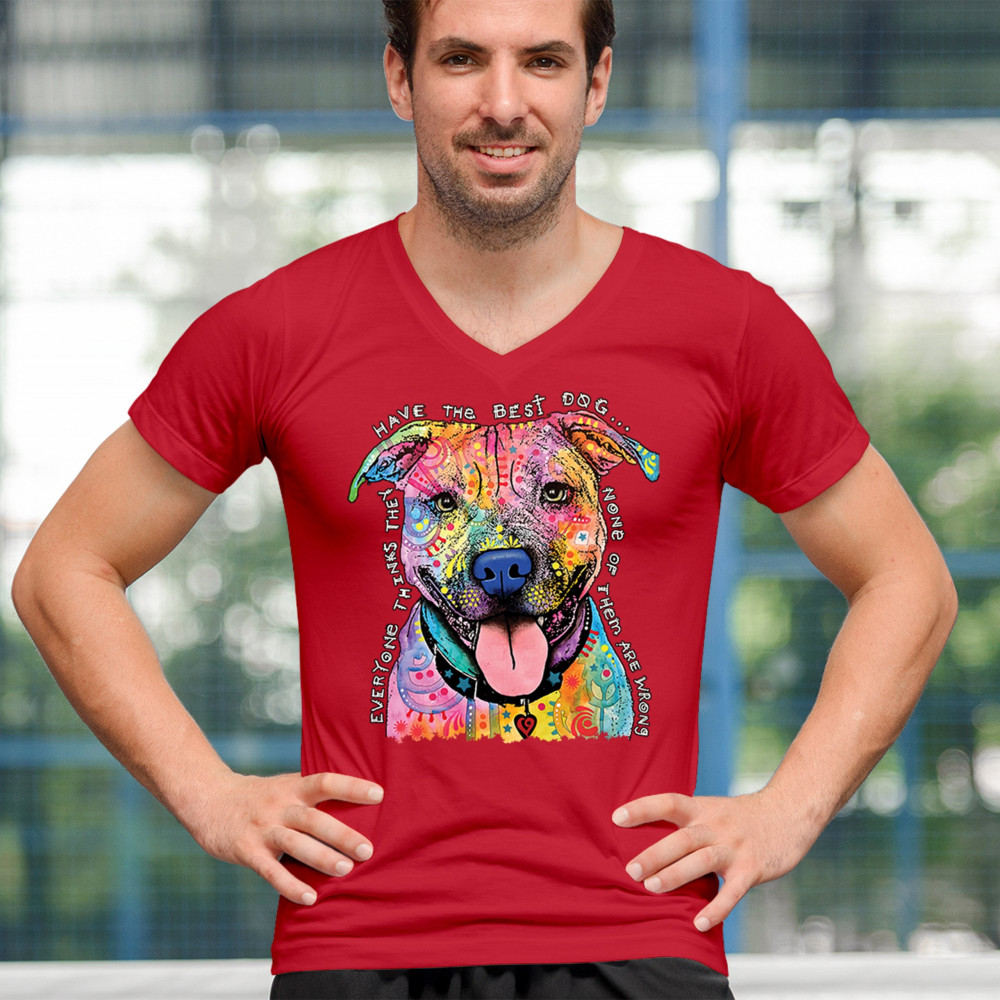 DEAN RUSSO COLORFUL PIT BULL v-neck t-shirt everyone has best dogs tee red