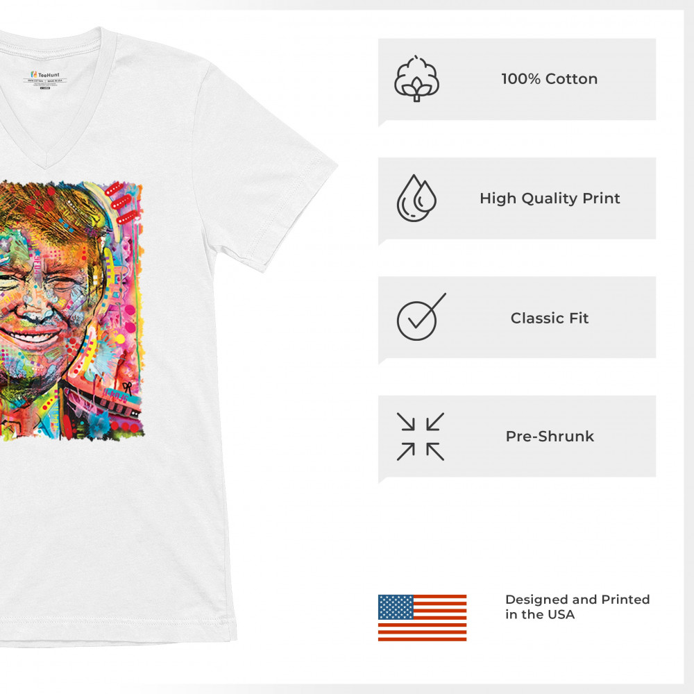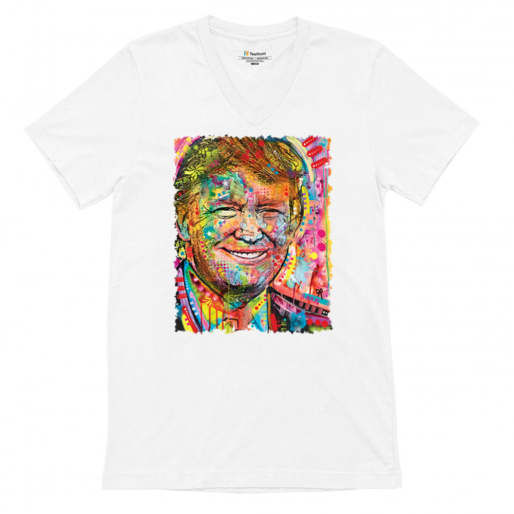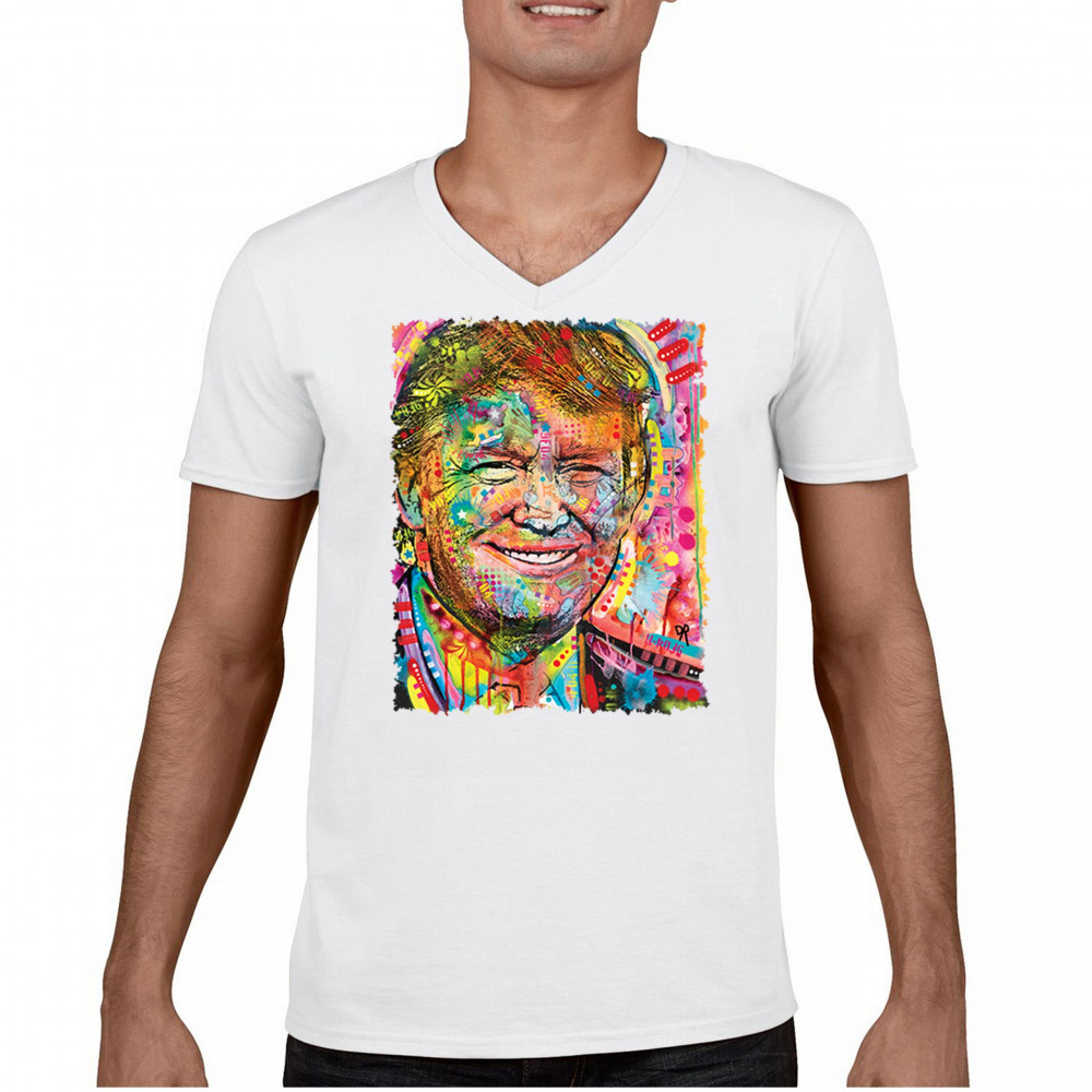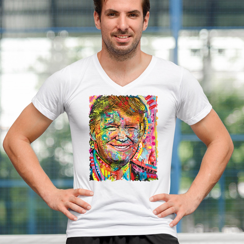 DEAN RUSSO COLORFUL TRUMP v-neck t-shirt 45 american president 2024 tee white