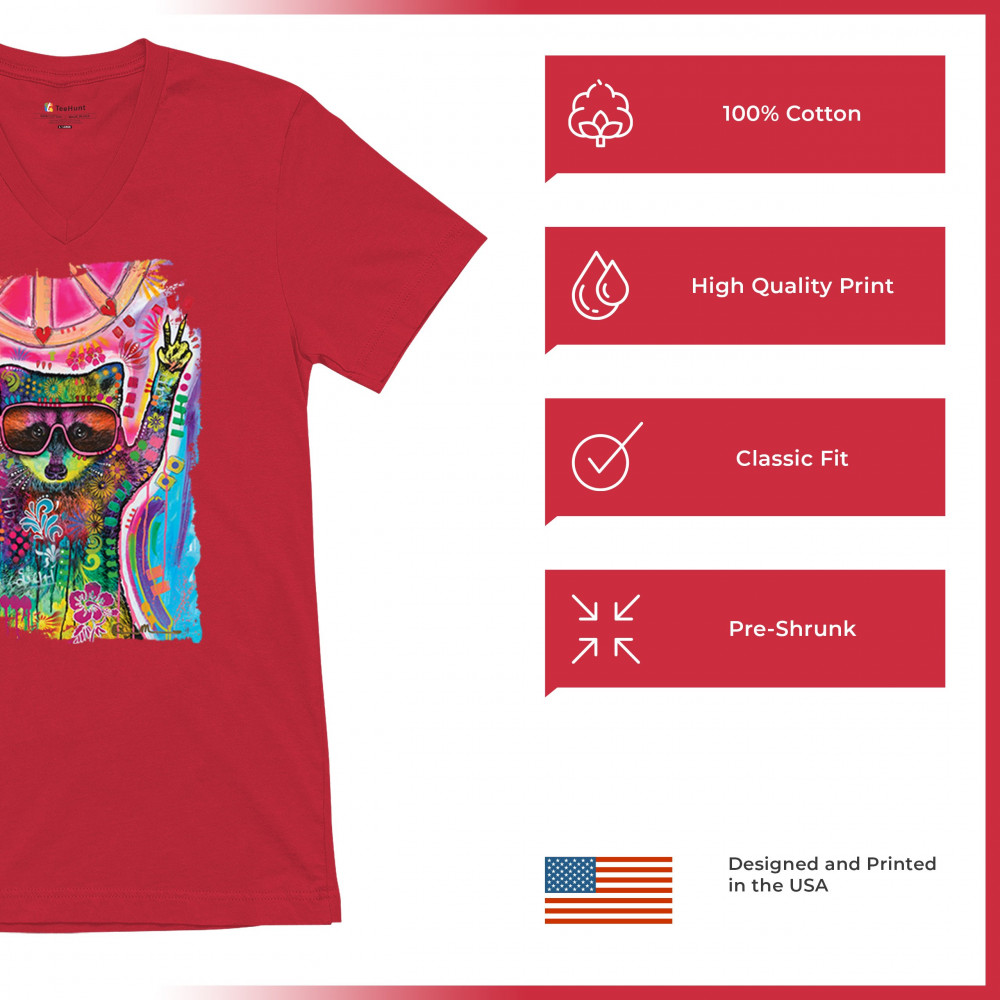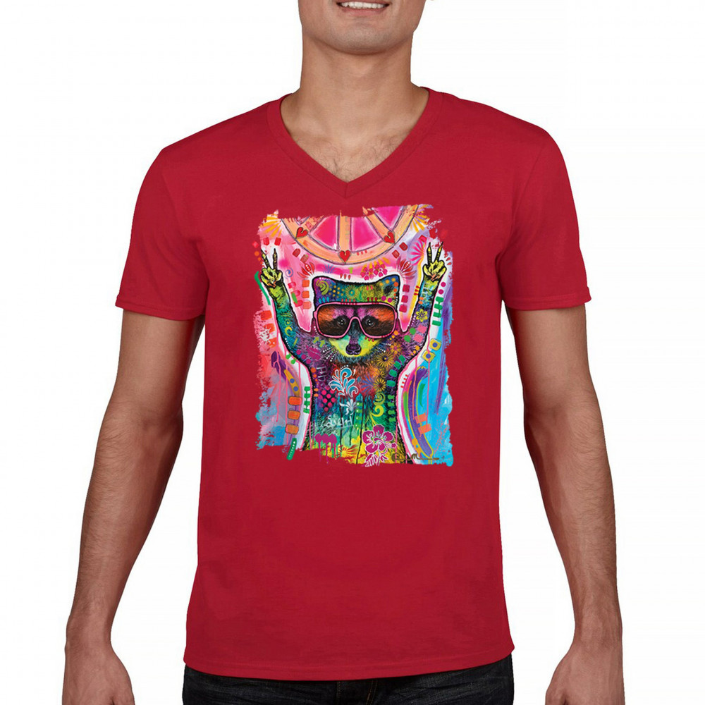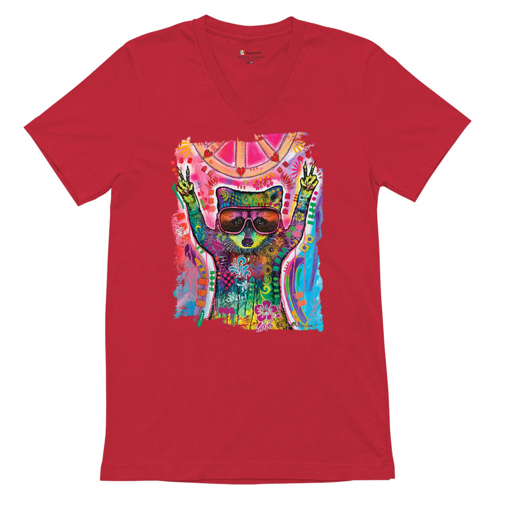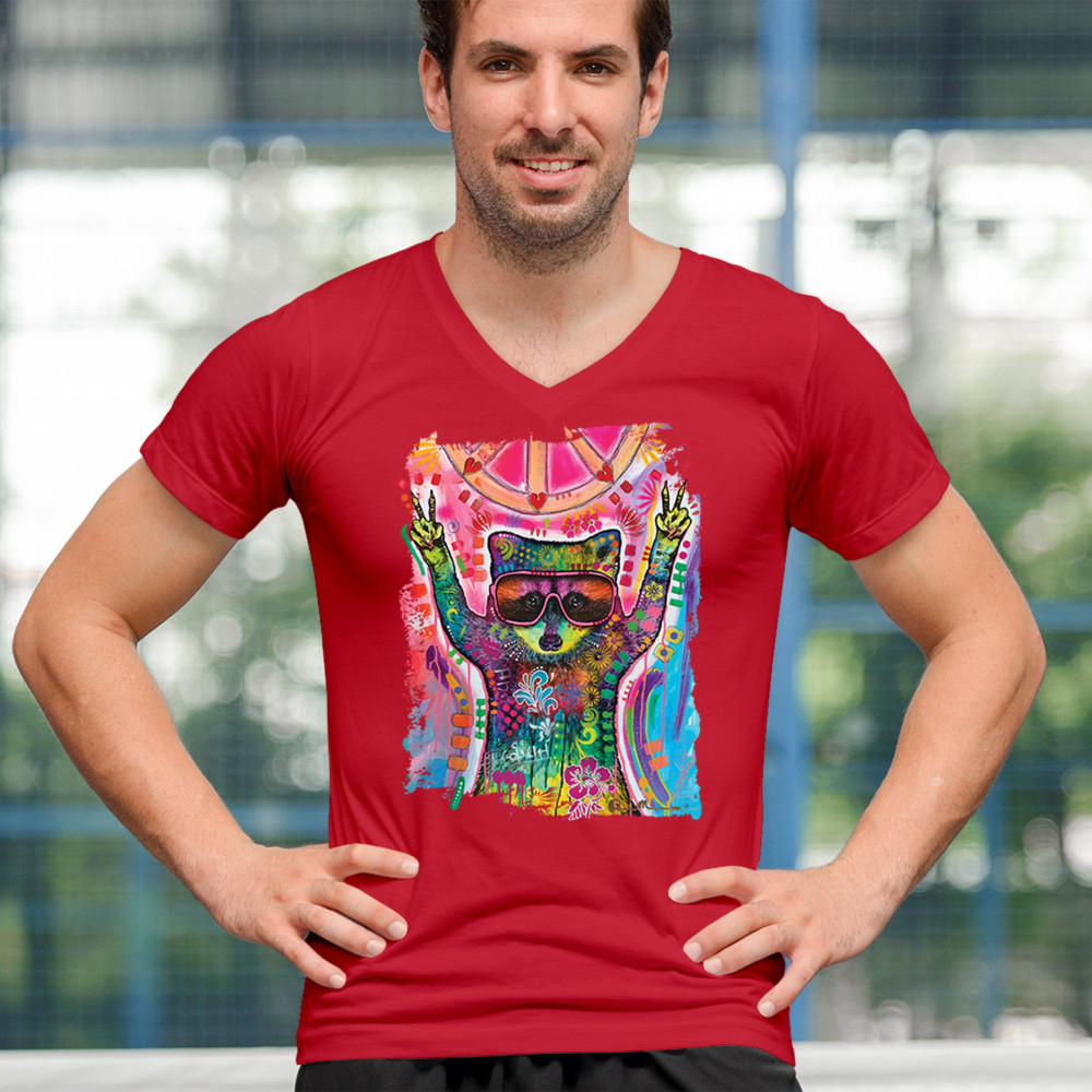 DEAN RUSSO COSMIC TRASH PANDA v-neck t-shirt funny weird hippie tee red