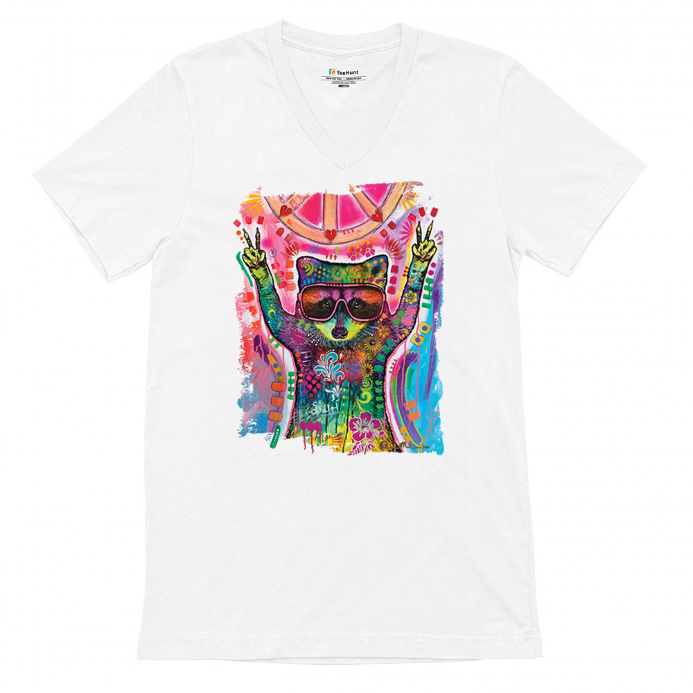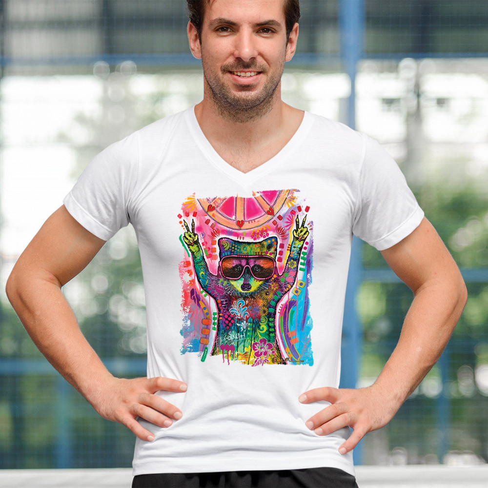 DEAN RUSSO COSMIC TRASH PANDA v-neck t-shirt funny weird hippie tee white