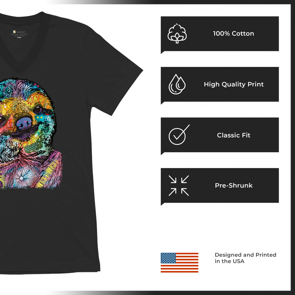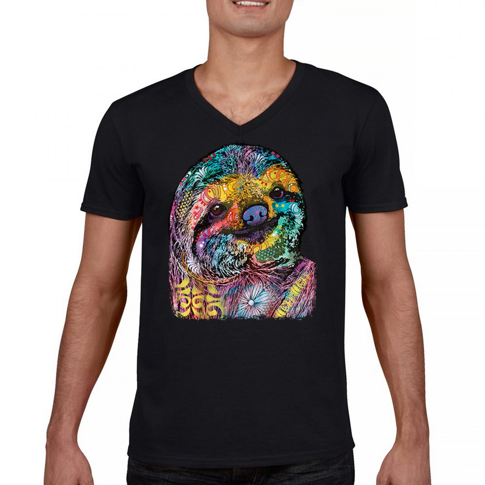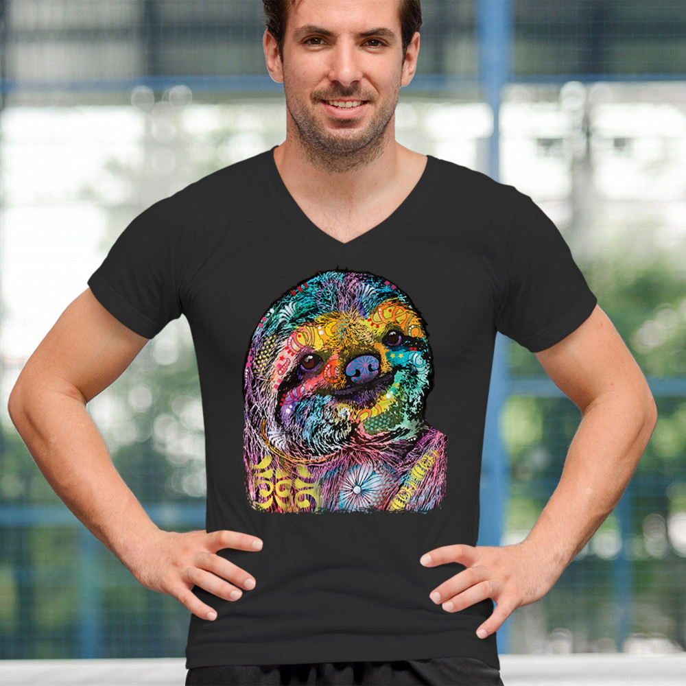 DEAN RUSSO CUTE LAZY SLOTH v-neck t-shirt funny wild life colorful tee black