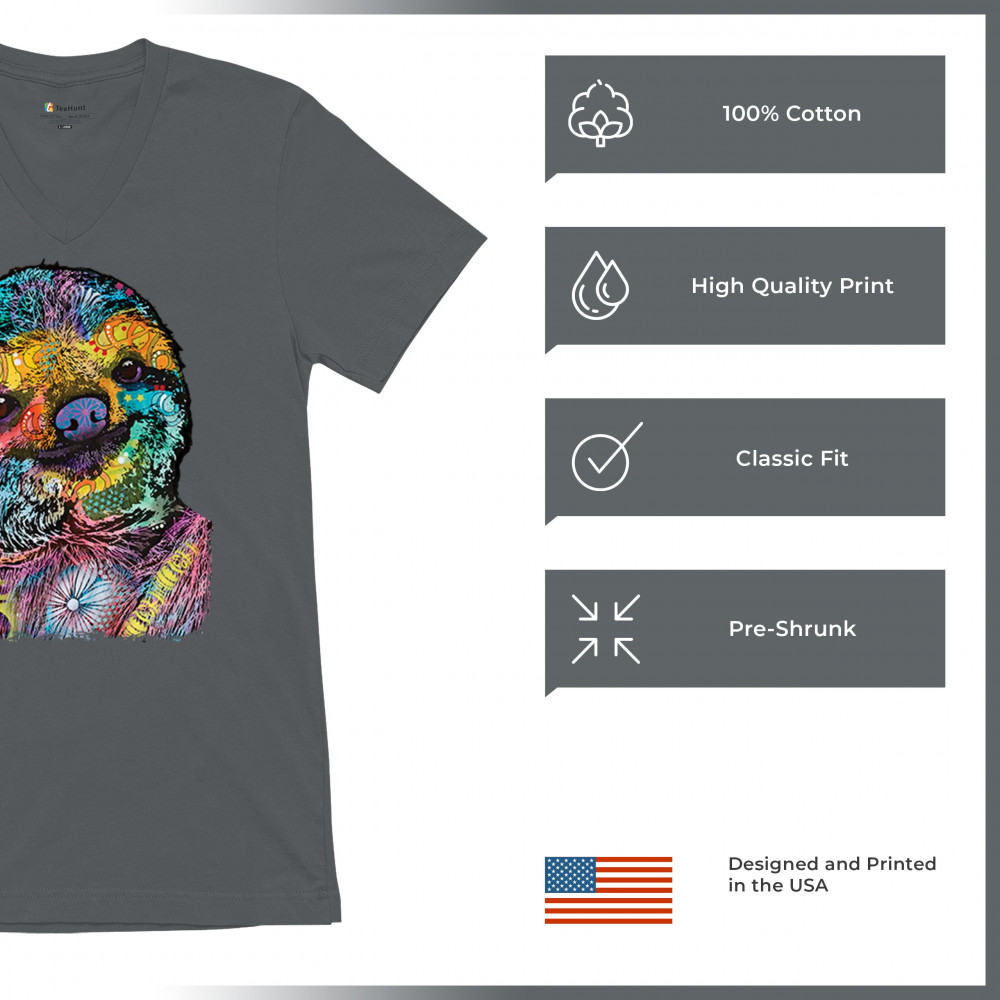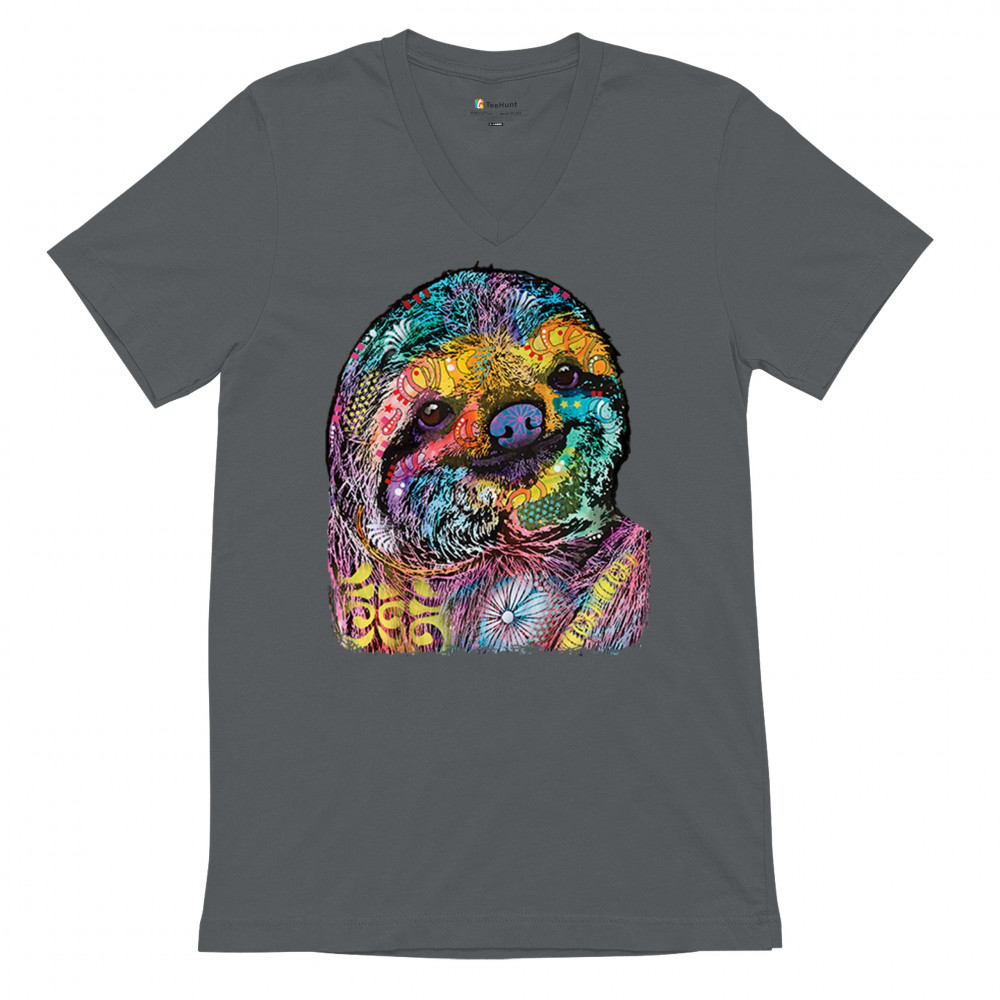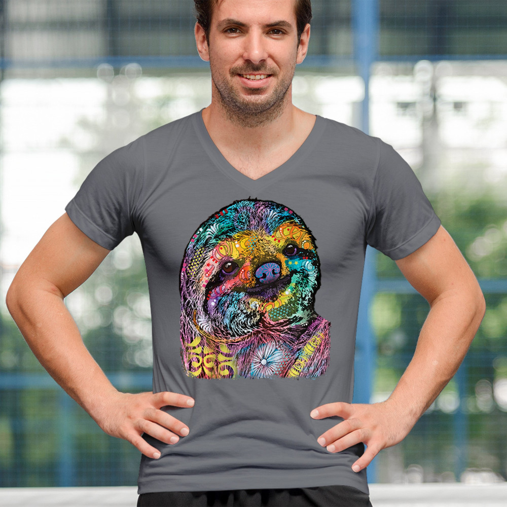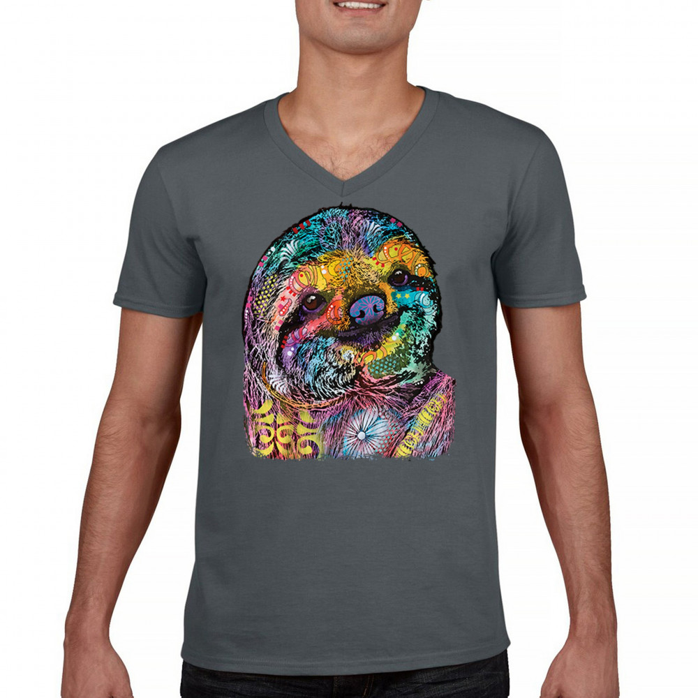 DEAN RUSSO CUTE LAZY SLOTH v-neck t-shirt funny wild life colorful tee charcoal