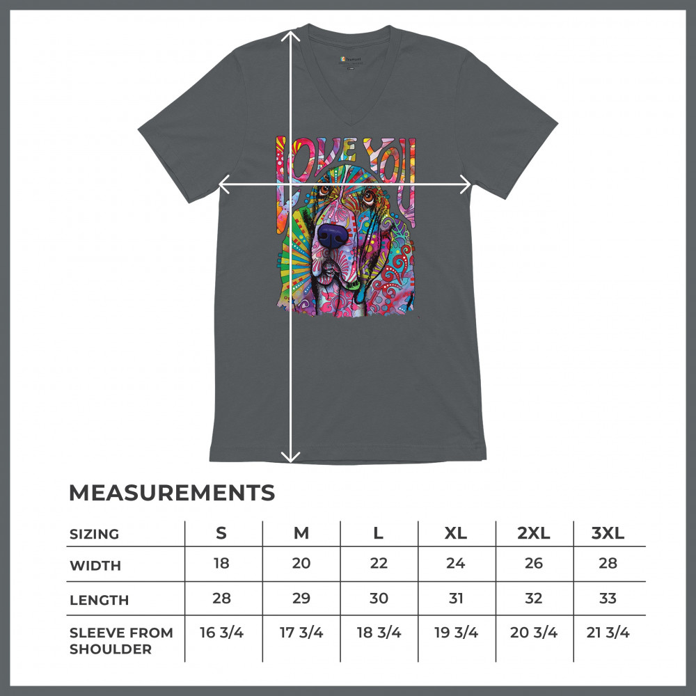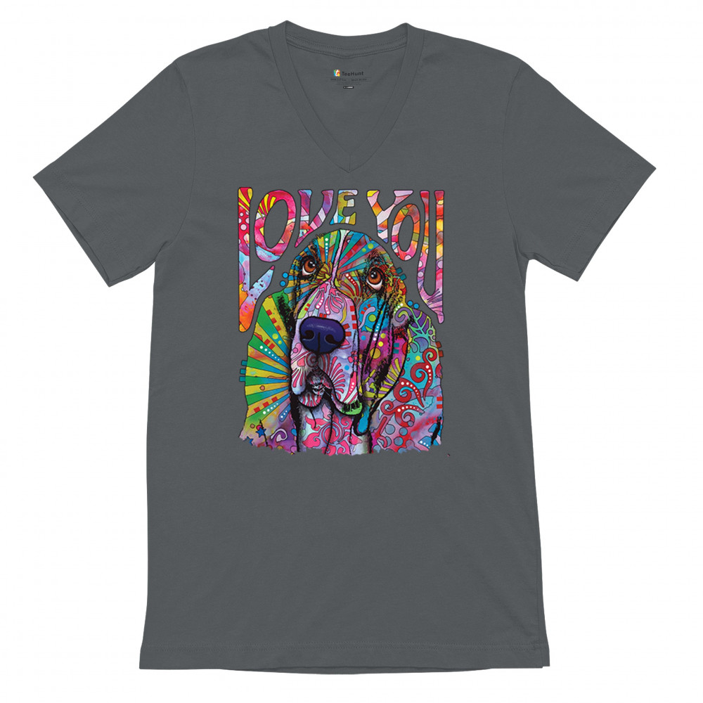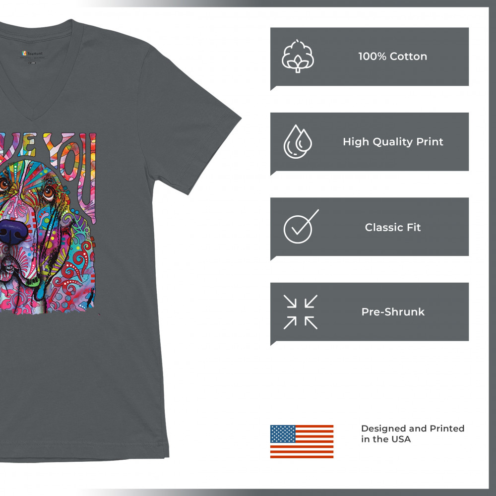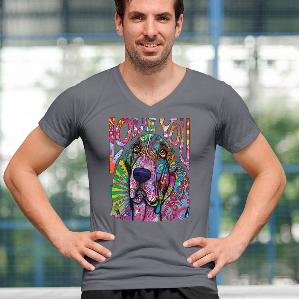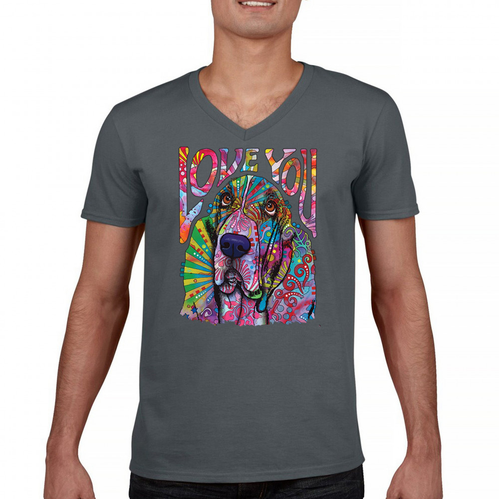 DEAN RUSSO CUTE LOVE YOU BASSET v-neck t-shirt colorful dog neon pet tee charcoal