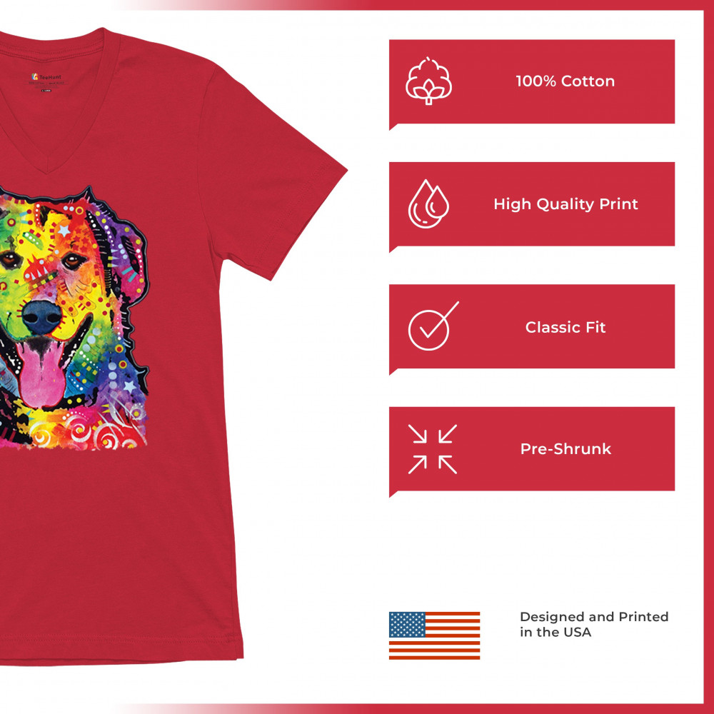 DEAN RUSSO CUTE NEON DOG v-neck t-shirt rescue adopt a pet colorful pet tee red