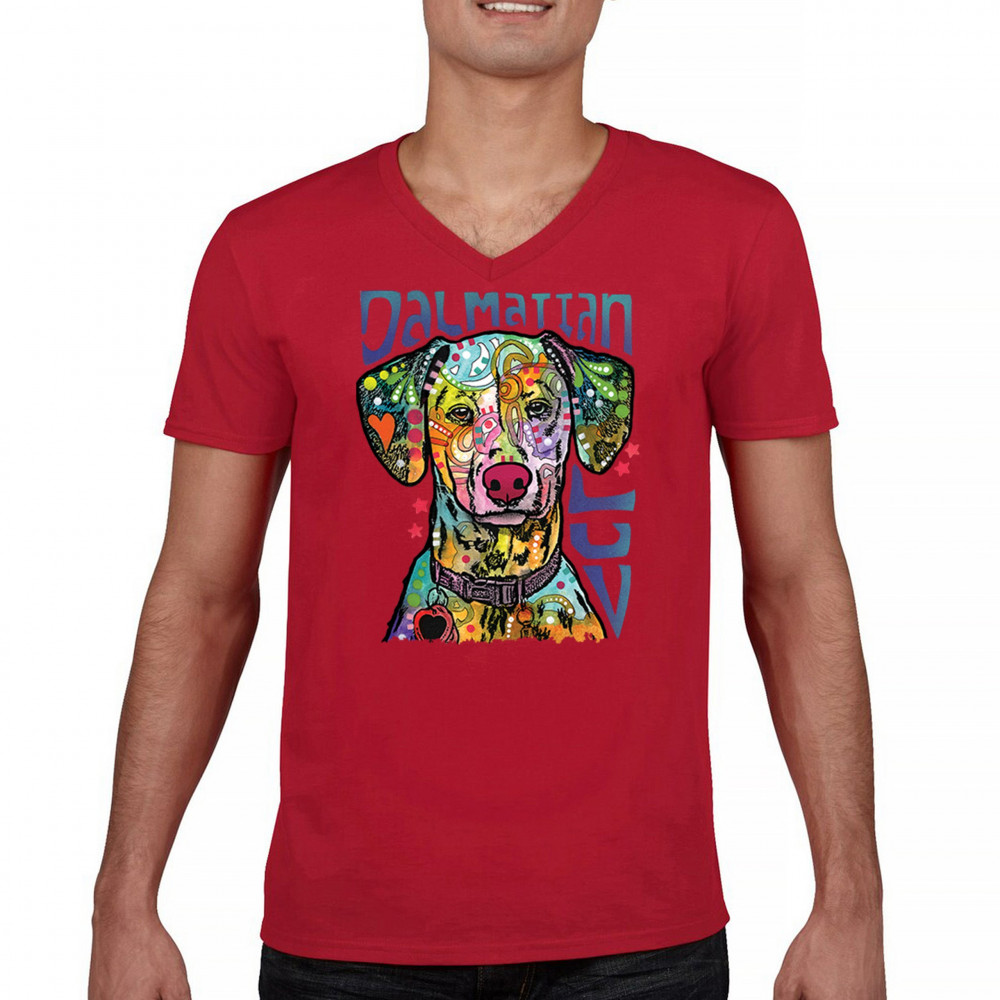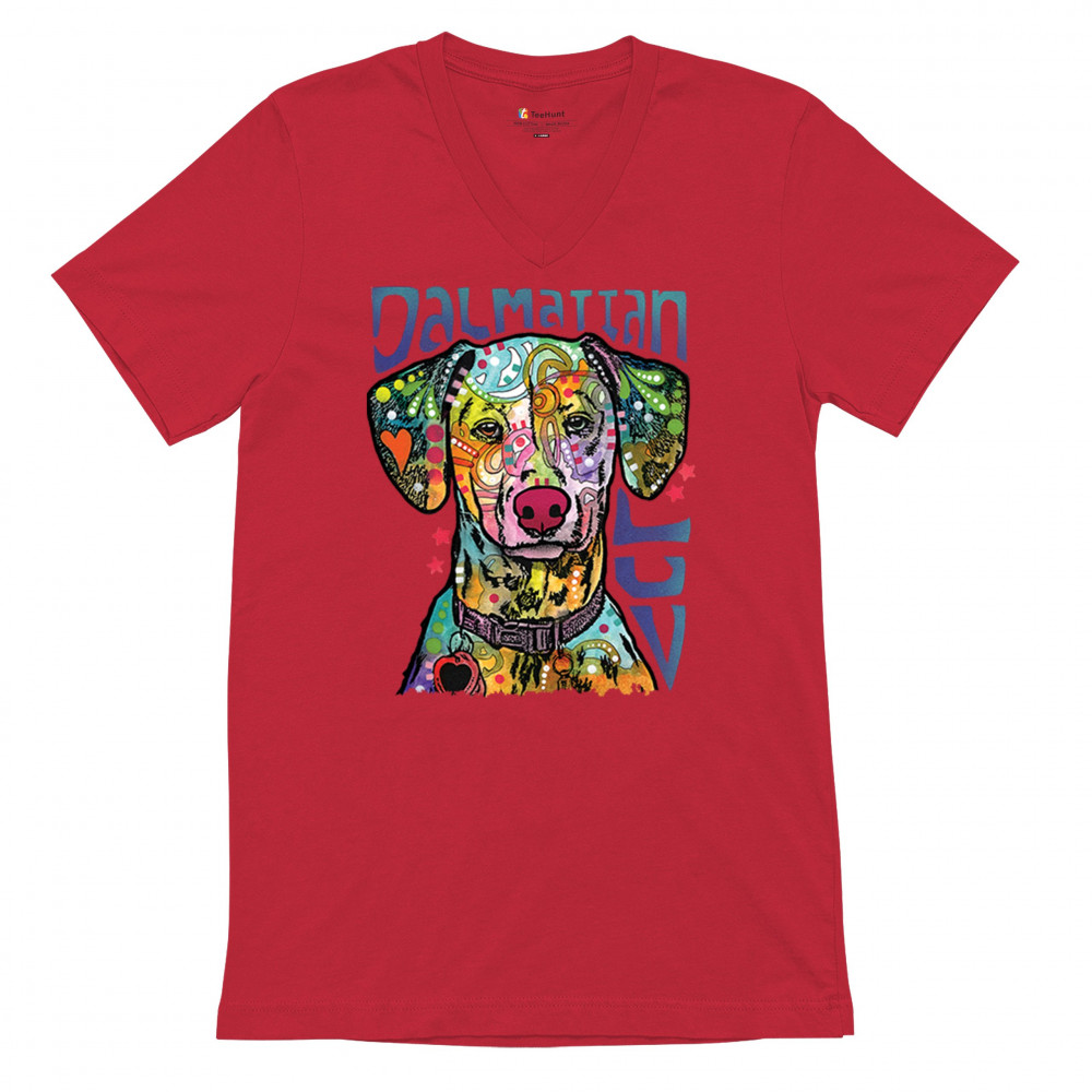 DEAN RUSSO DALMATIAN LUV COLORFUL DOG v-neck t-shirt neon puppy lover tee red