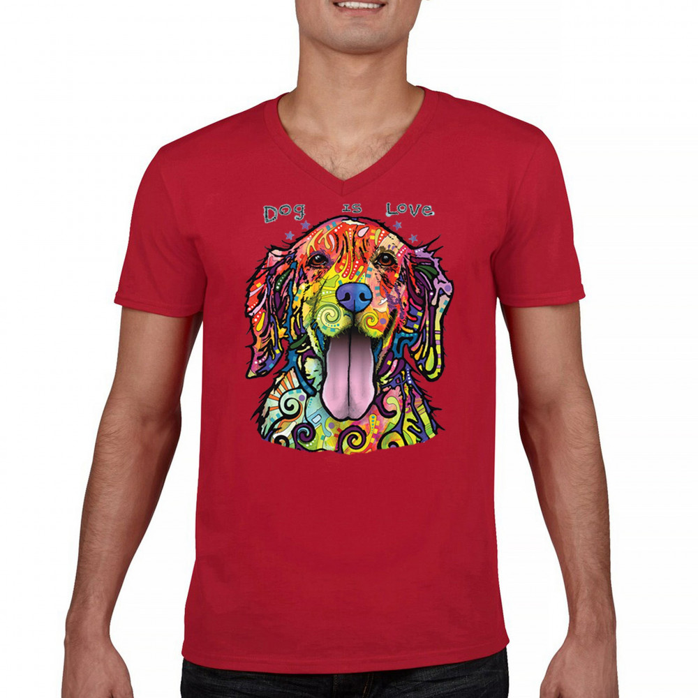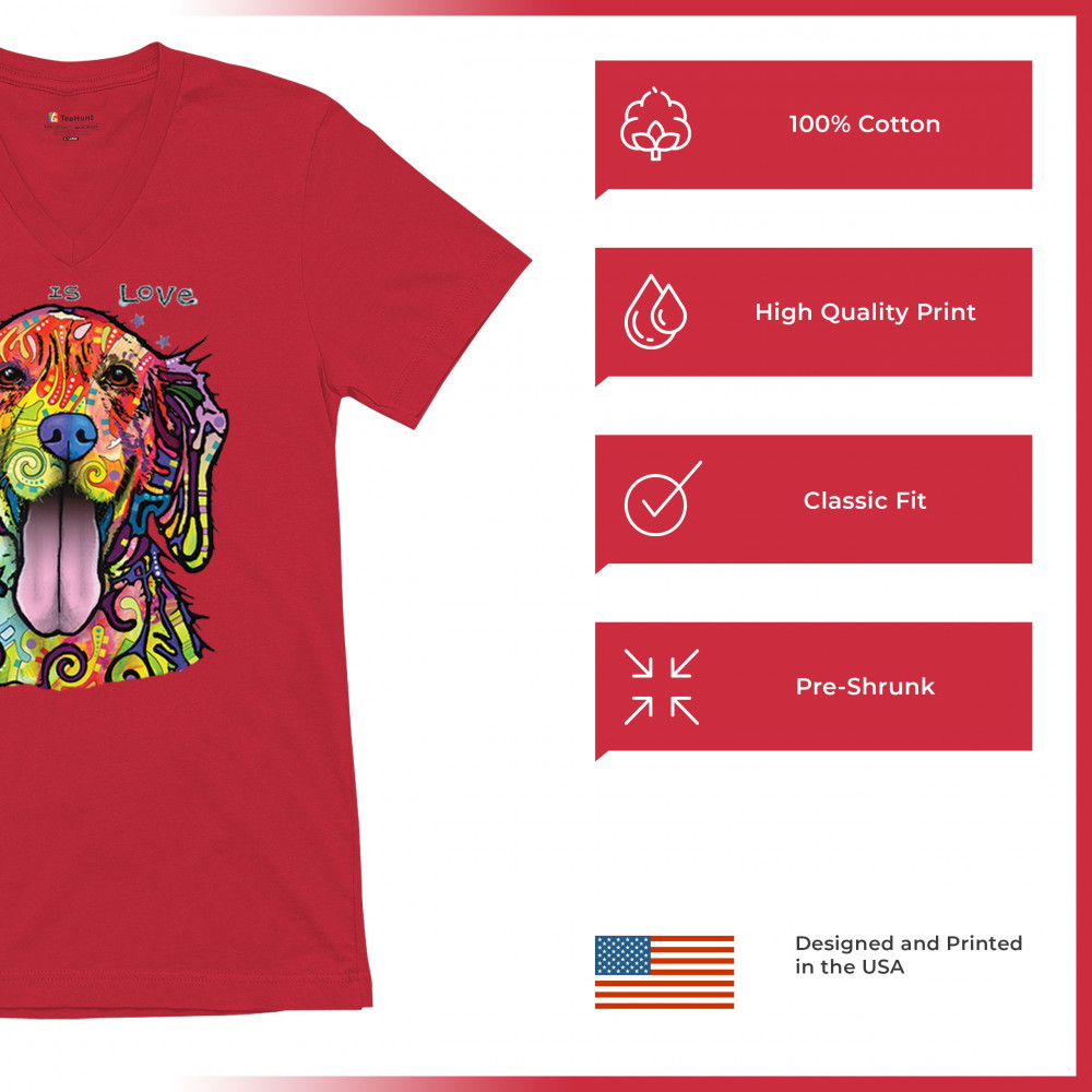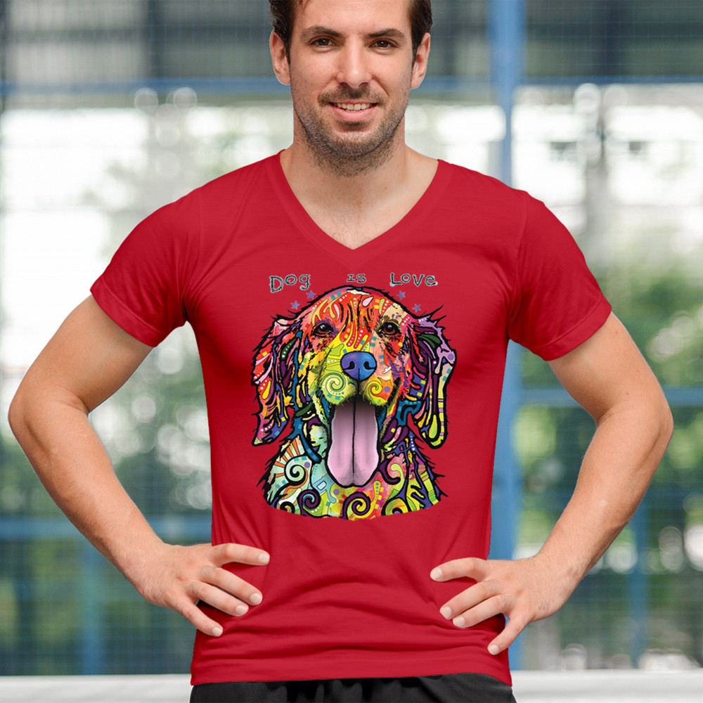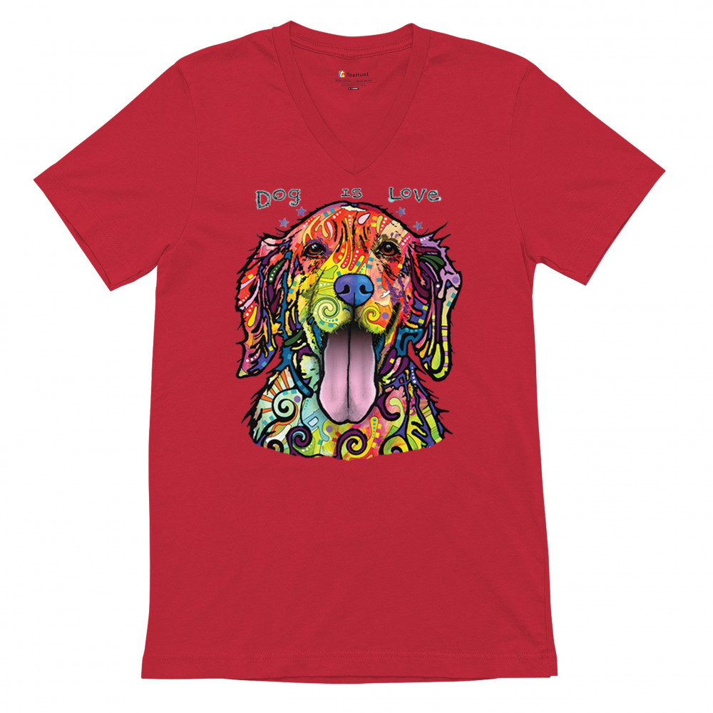 DEAN RUSSO DOG IS LOVE LABRADOR RETRIEVER v-neck t-shirt happy pet tee red