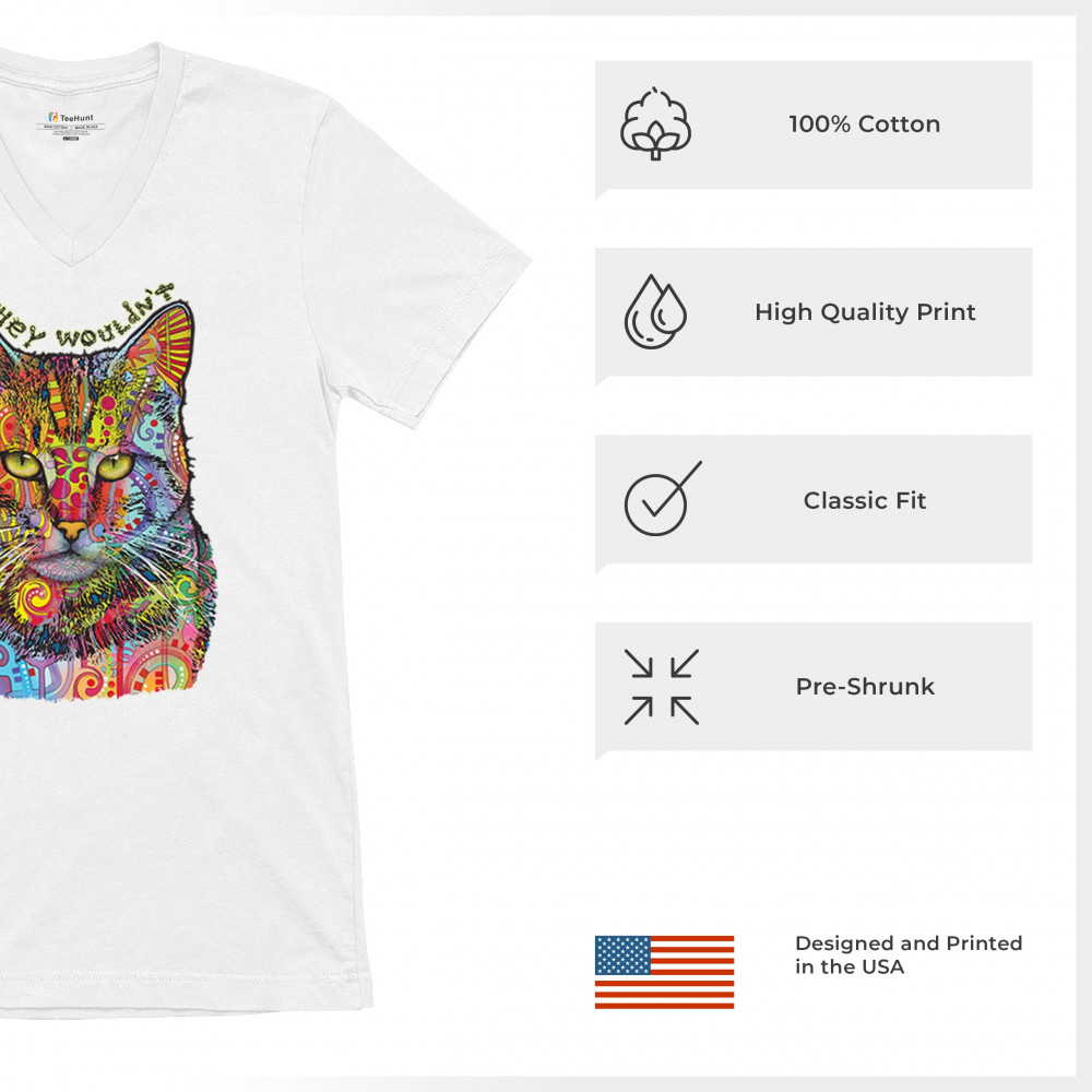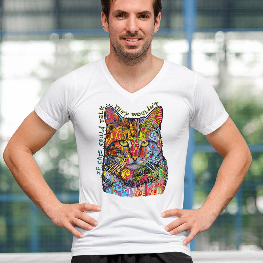 DEAN RUSSO IF CATS COULD TALK THEY WOULDN'T v-neck t-shirt cute cat tee white