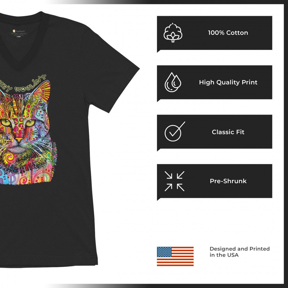 DEAN RUSSO IF CATS COULD TALK THEY WOULDN'T v-neck t-shirt cute cat tee black