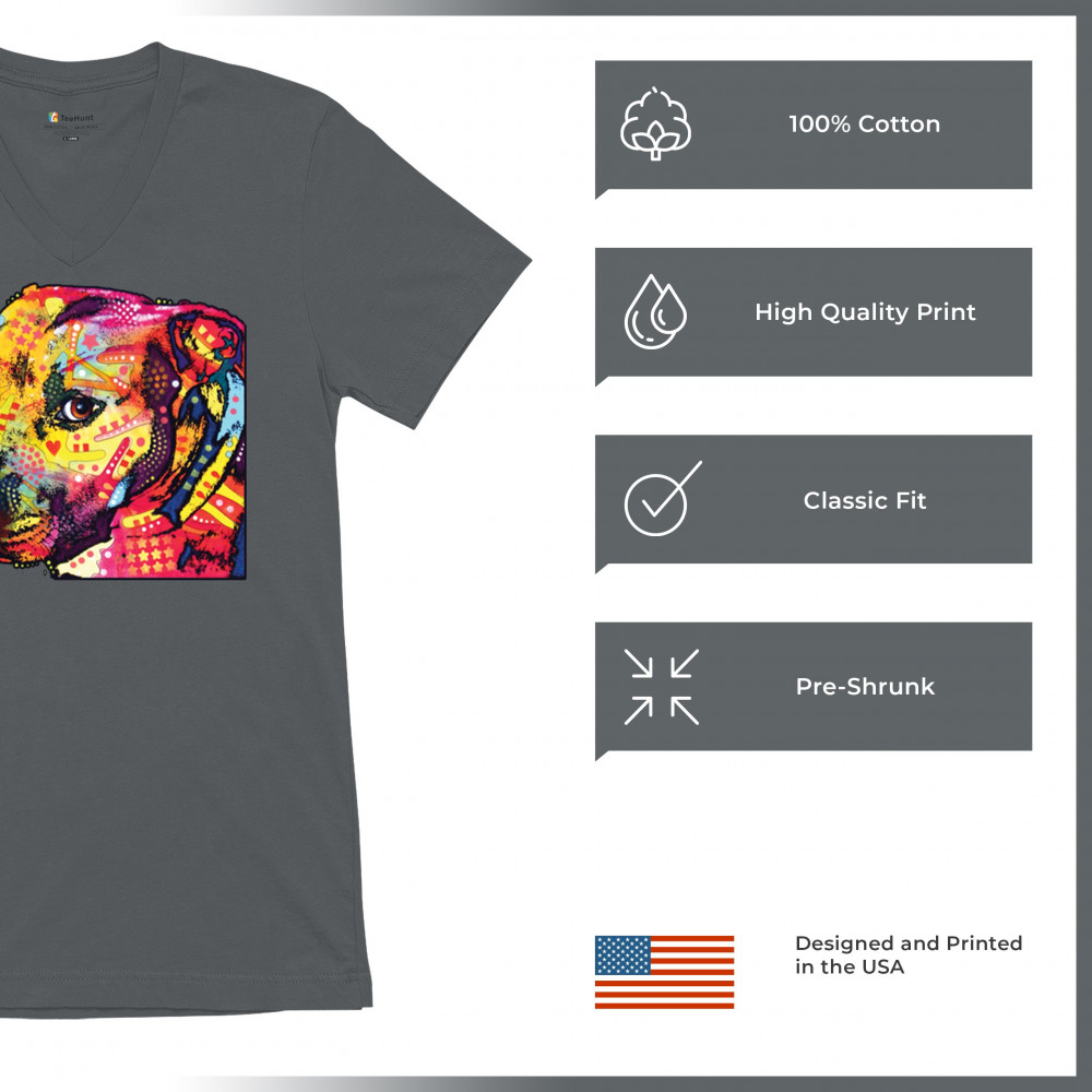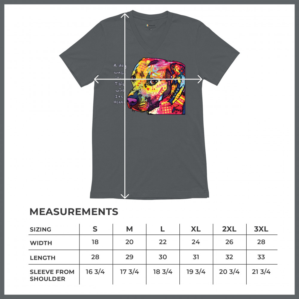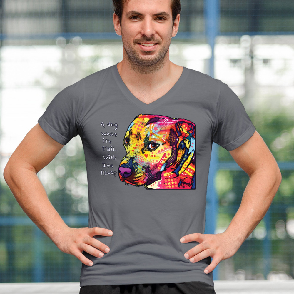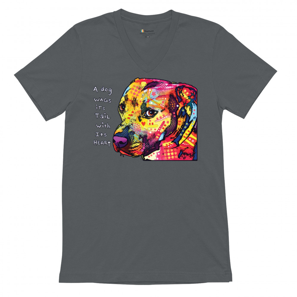 DEAN RUSSO PIT BULL v-neck t-shirt dog wags its tail with its heart tee charcoal