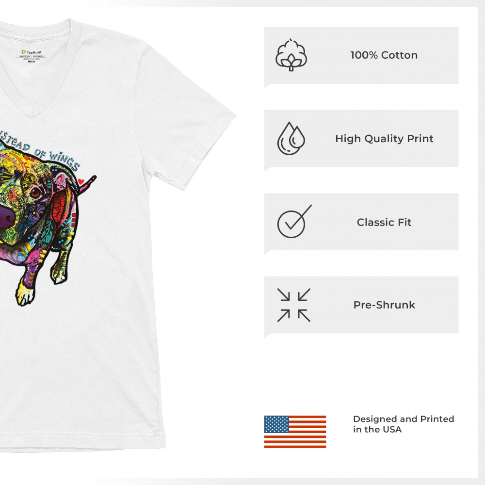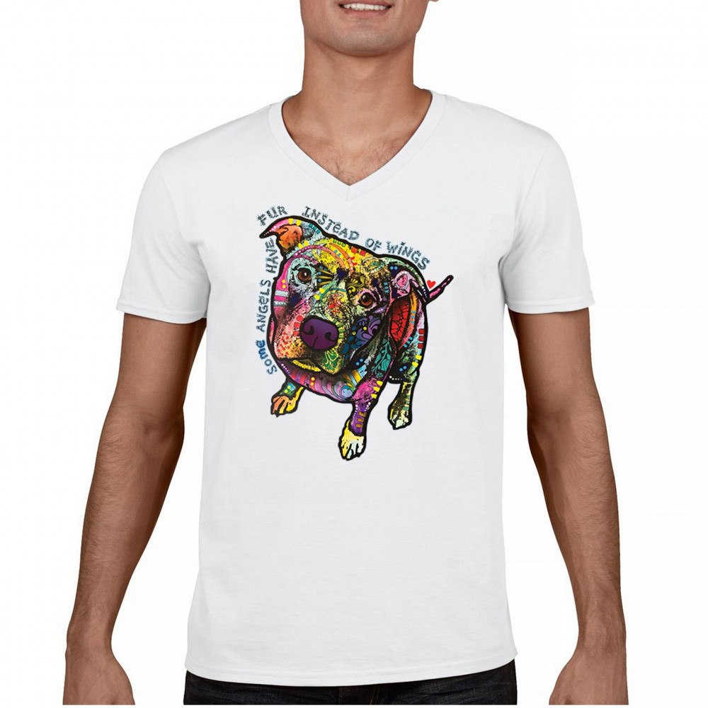 DEAN RUSSO PIT BULL v-neck t-shirt some angels have fur instead of wings tee white