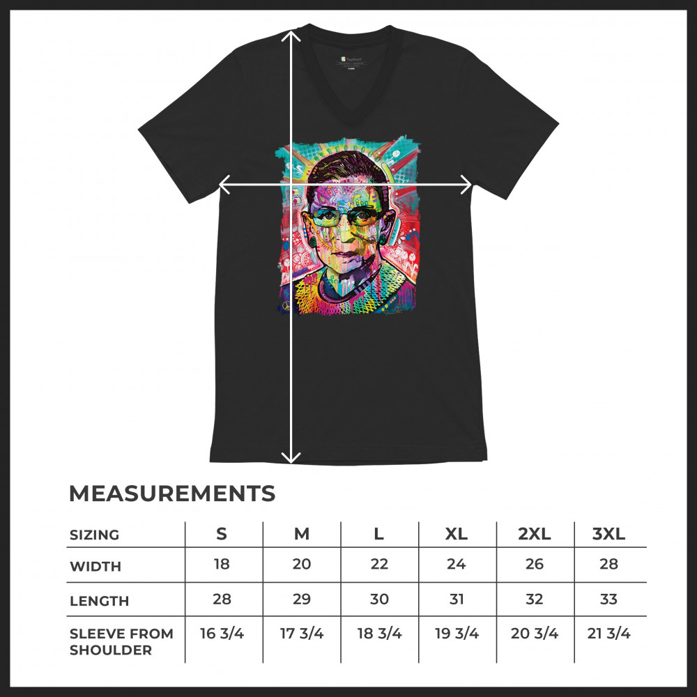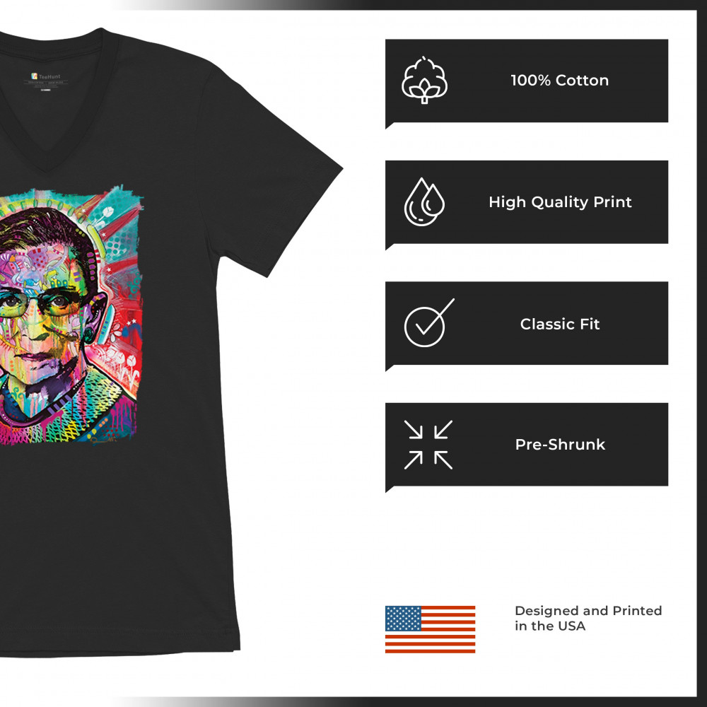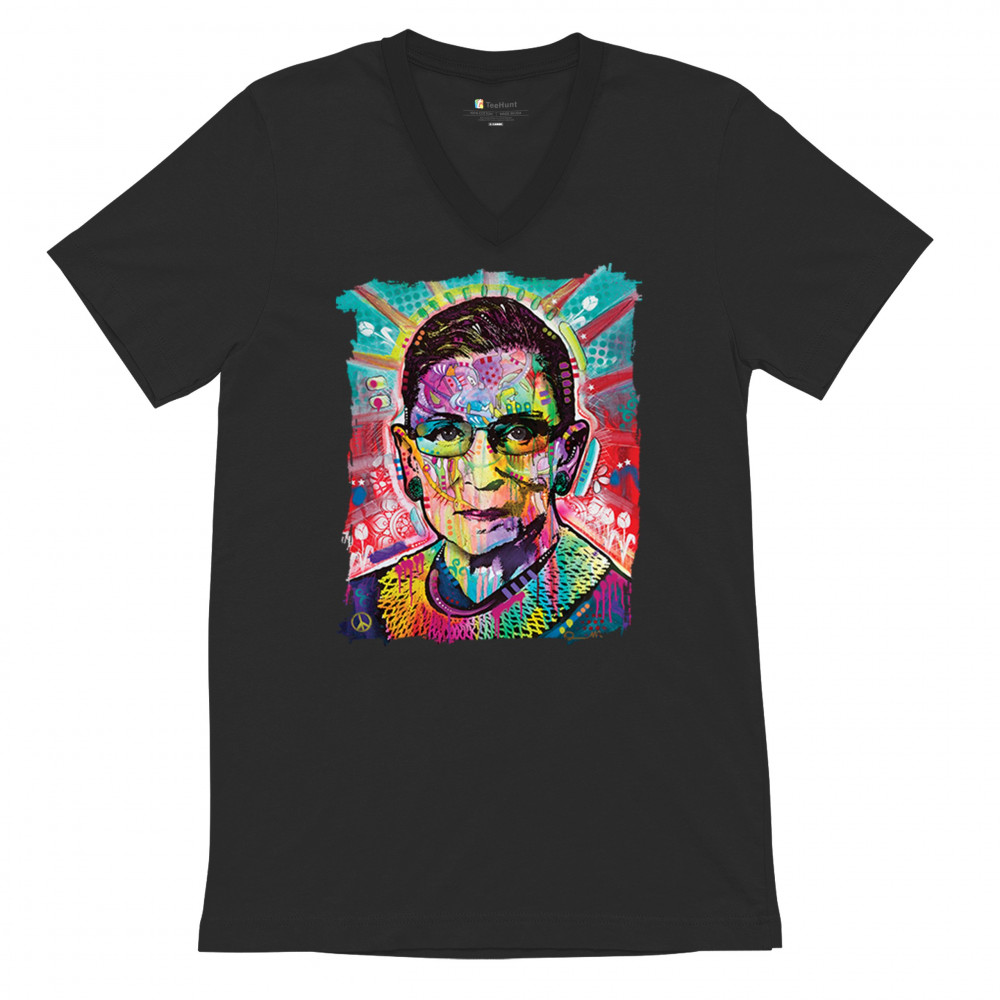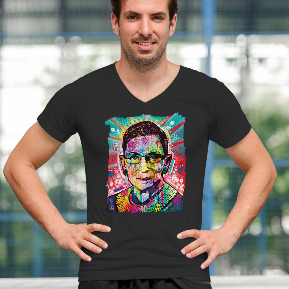 DEAN RUSSO RUTH BADER GINSBURG v-neck t-shirt pop culture icon rbg tee black