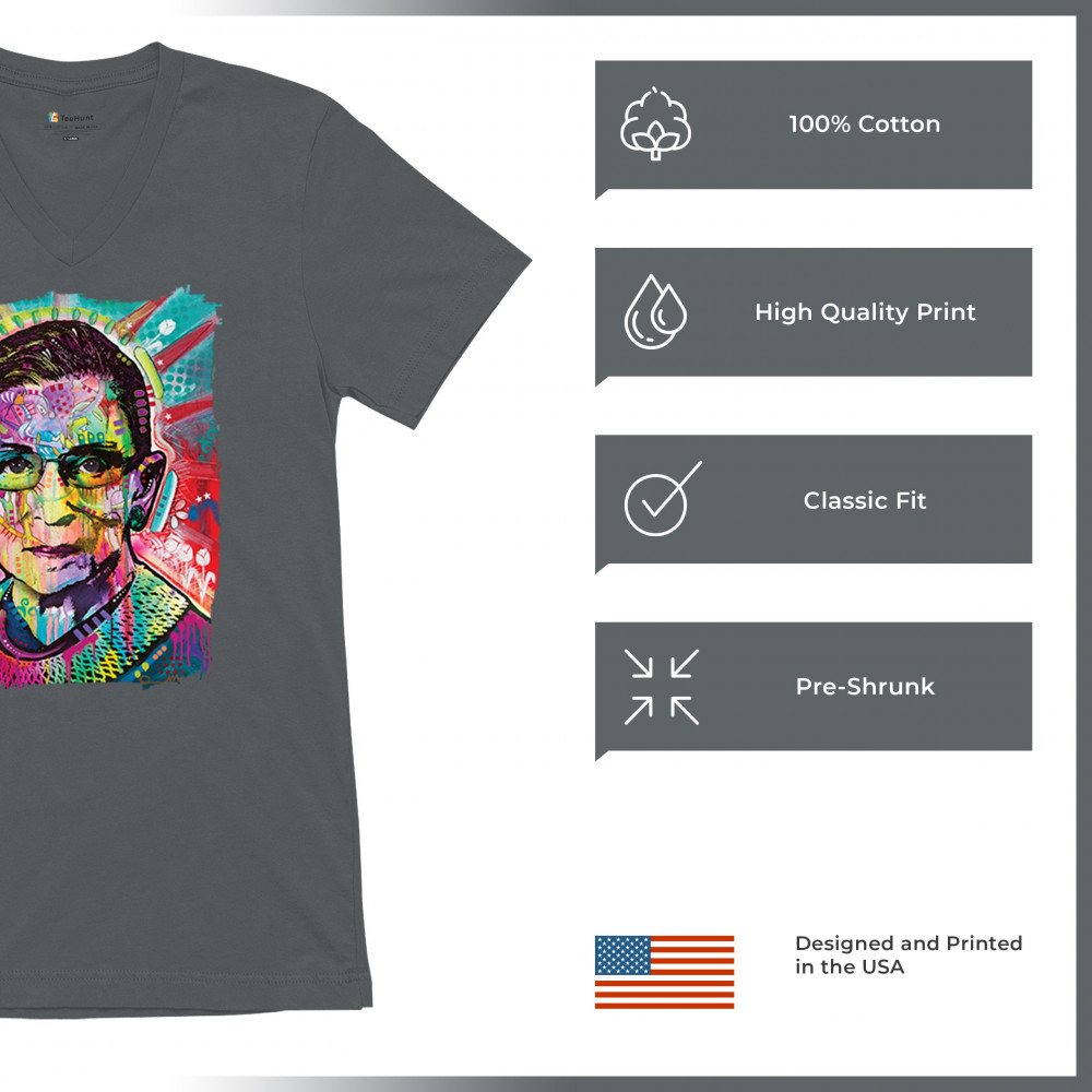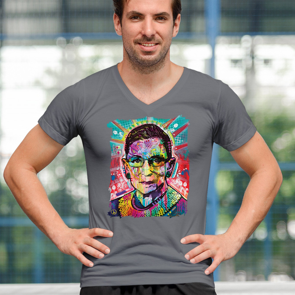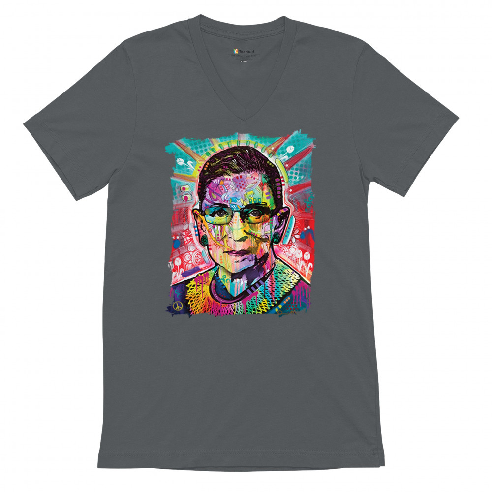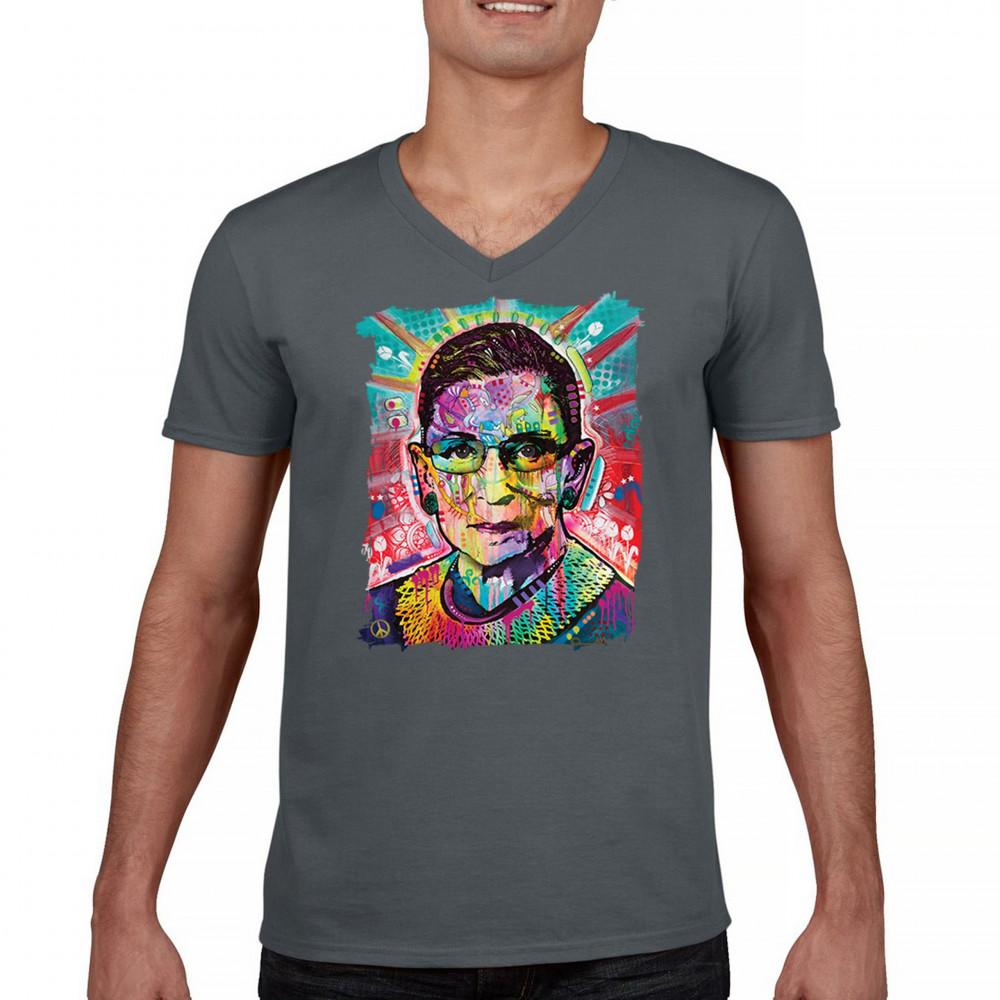 DEAN RUSSO RUTH BADER GINSBURG v-neck t-shirt pop culture icon rbg tee charcoal