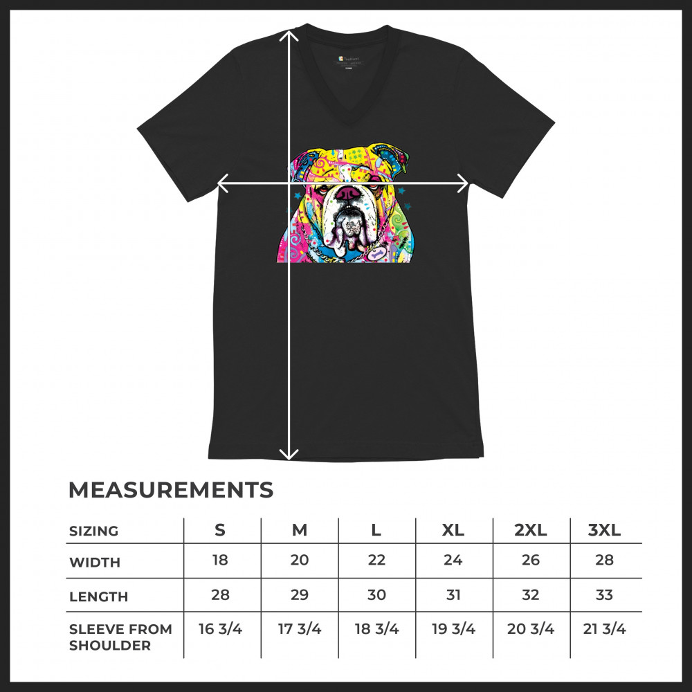 DEAN RUSSO SERIOUS BULLDOG v-neck t-shirt colorful dog best friend tee black