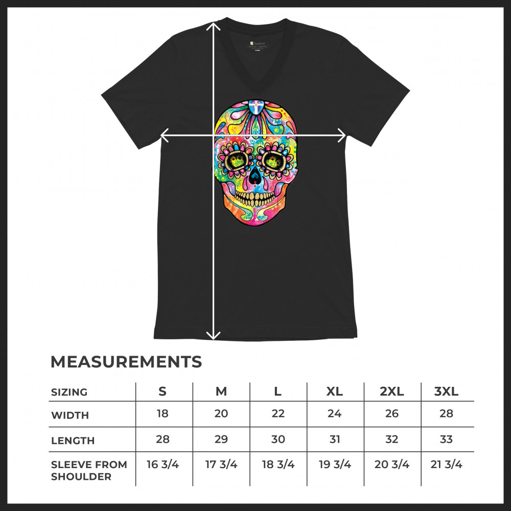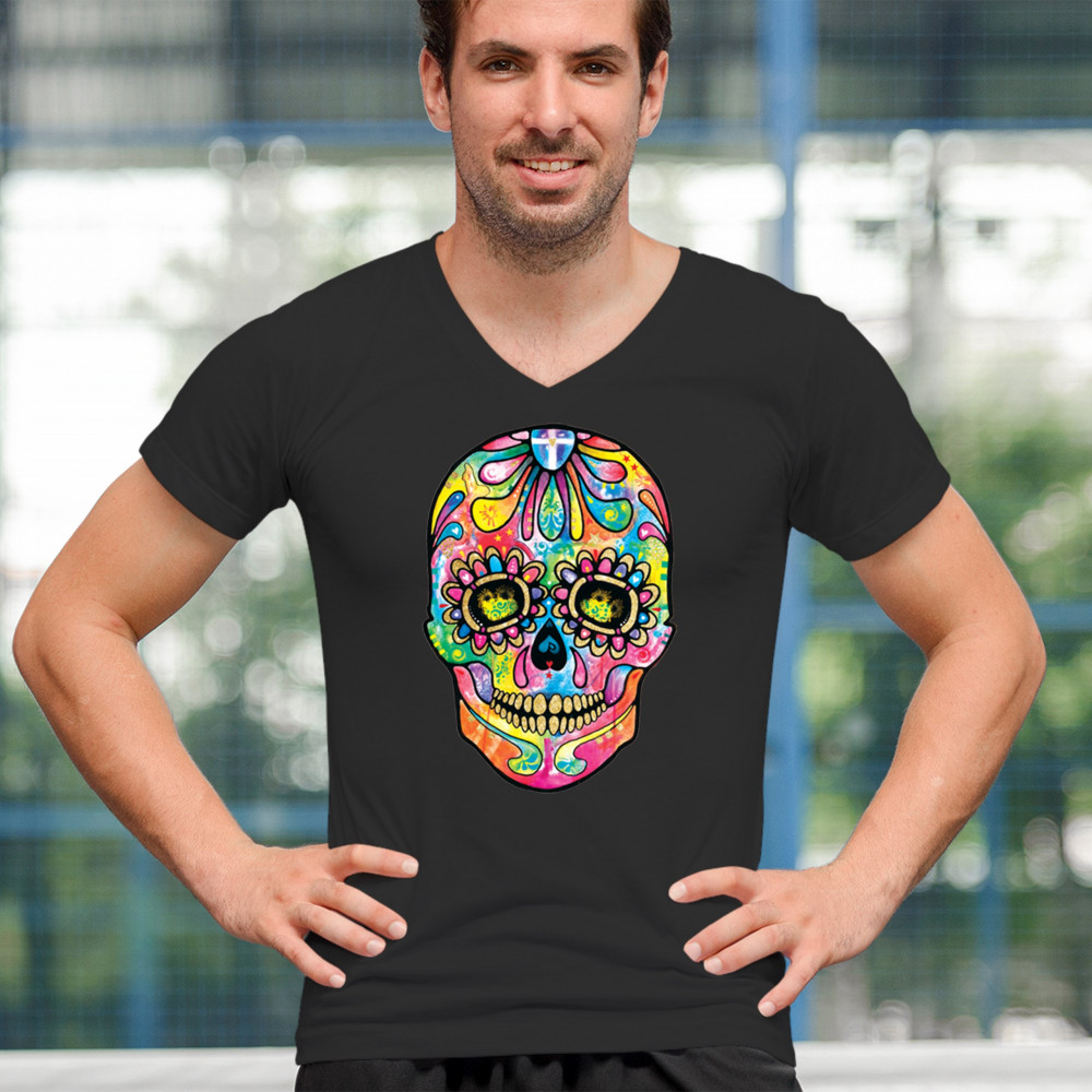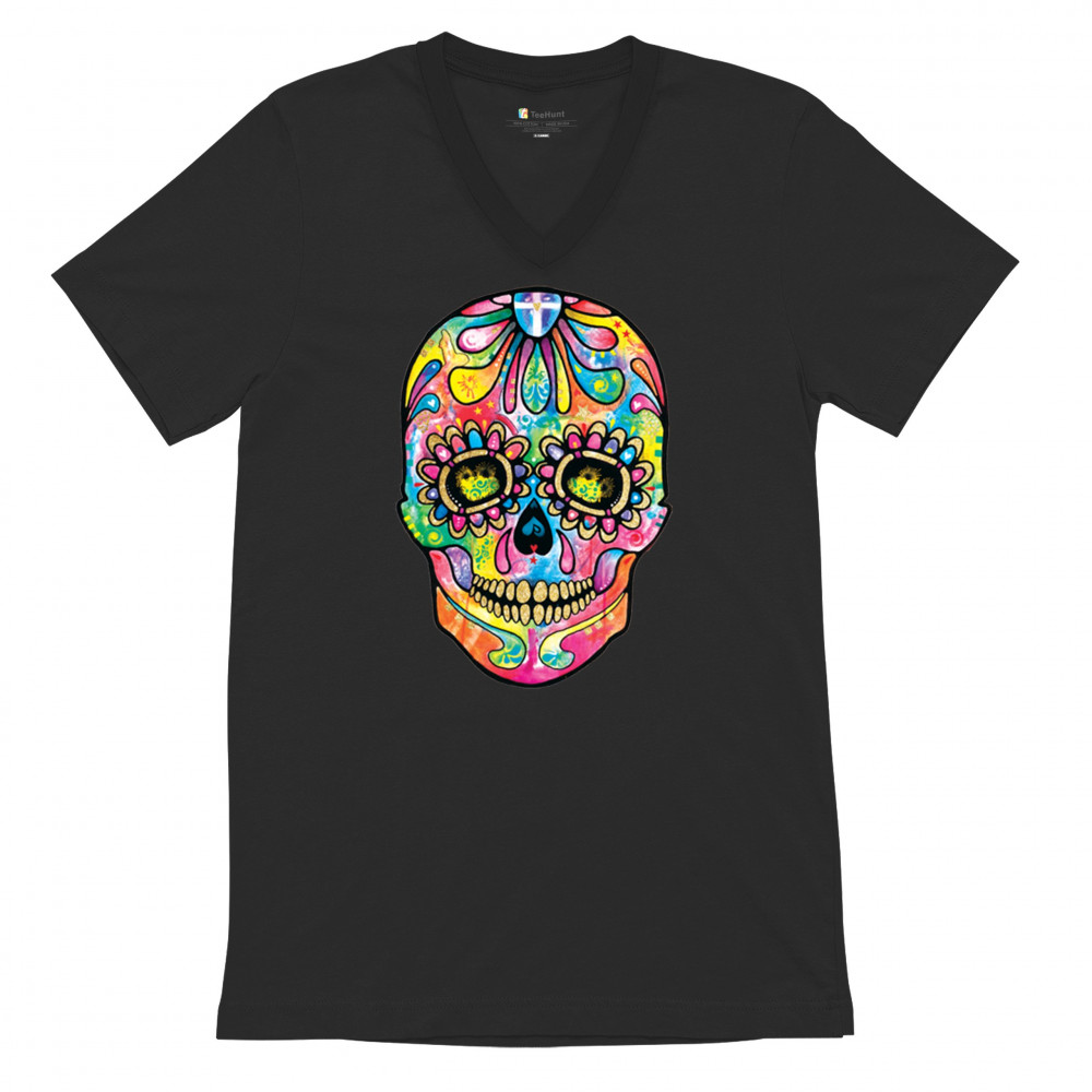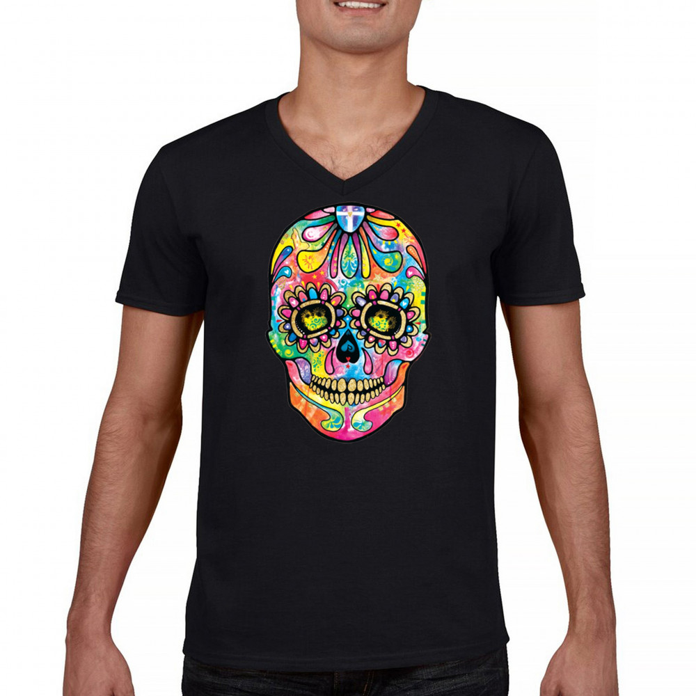 DEAN RUSSO SUGAR SKULL v-neck t-shirt day of the dead neon calavera tee black