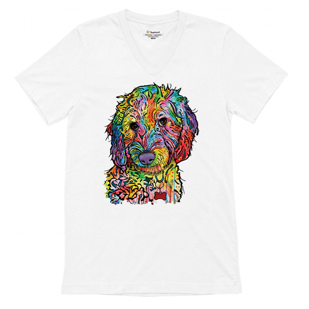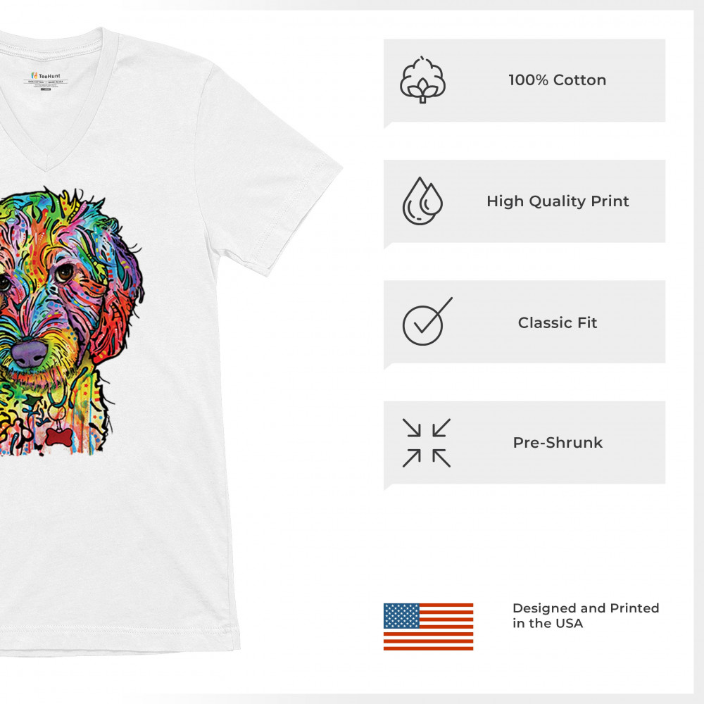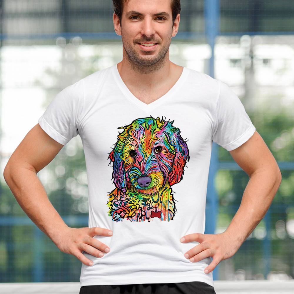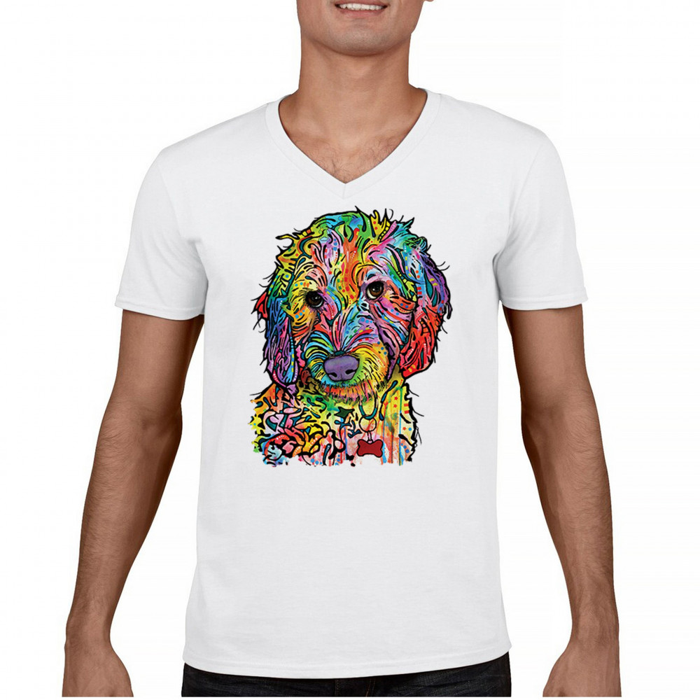 DEAN RUSSO SWEET POODLE v-neck t-shirt dog pattern puppy adopt pet tee white