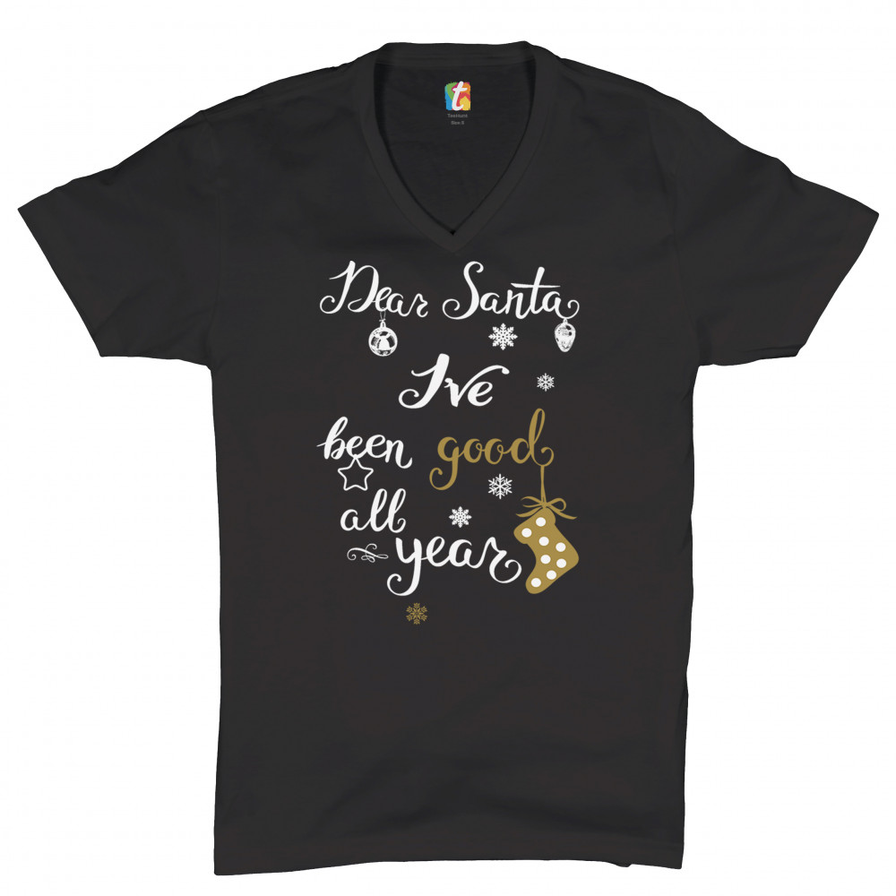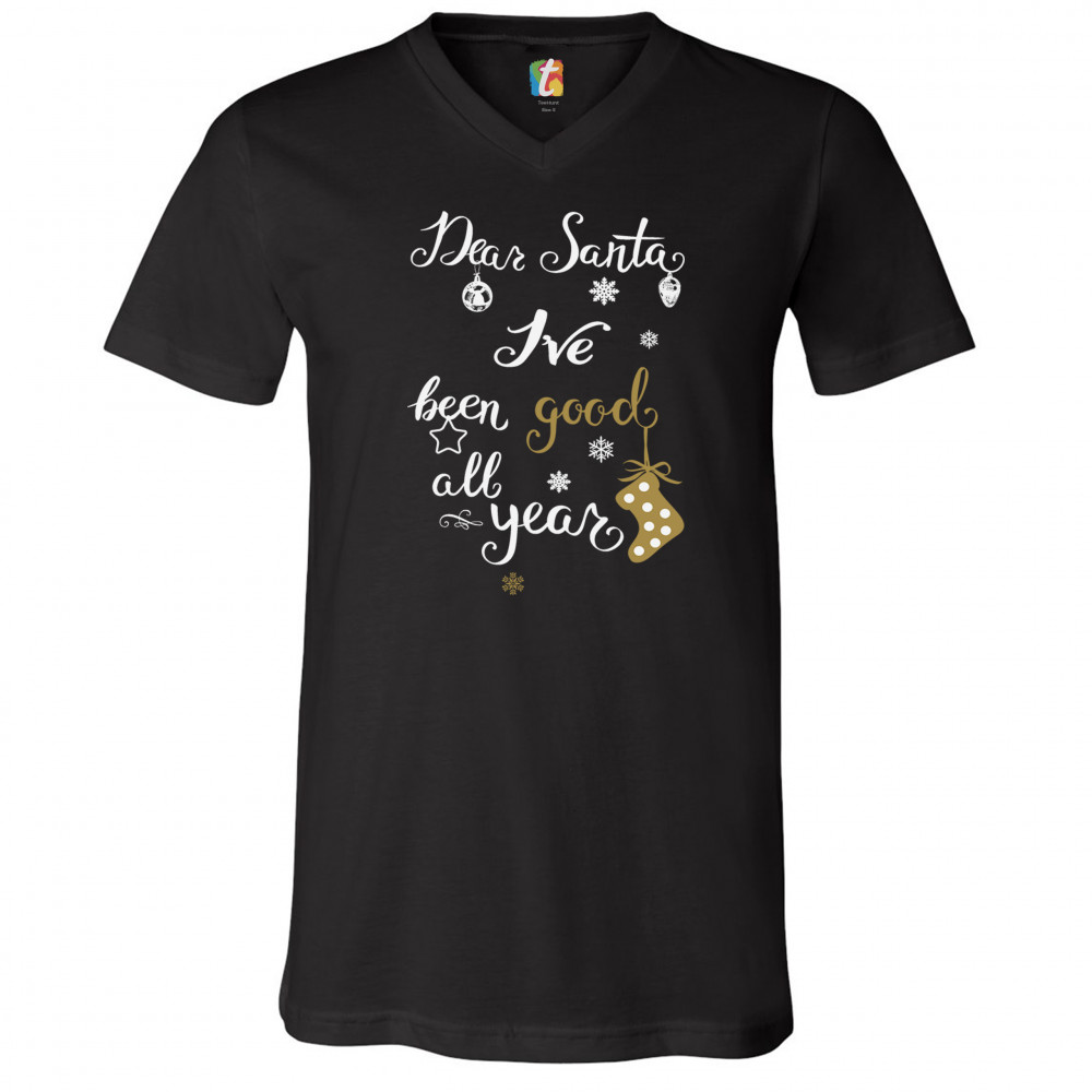 DEAR SANTA I'VE BEEN GOOD ALL YEAR v-neck t-shirt funny christmas xmas tee black