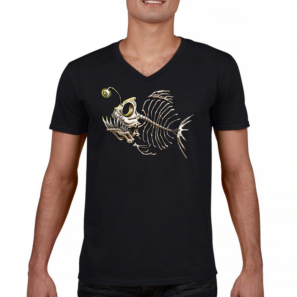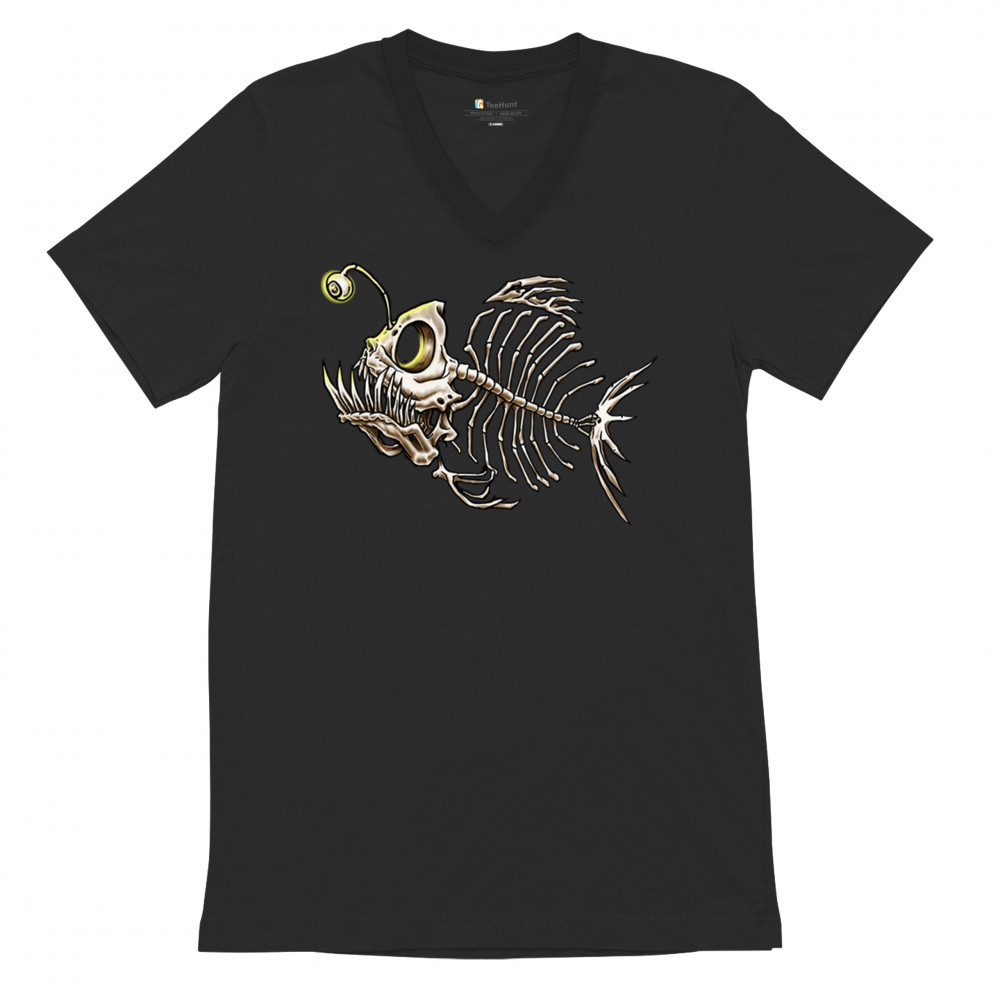 This highly detailed angler fish skeleton design features sharp bones, glowing lure eye, and deep sea terror aesthetic. Perfect for horror fans, marine biology lovers, and ocean adventurers, it combines underwater predator vibes with bone art flair. A great fit for Halloween, dive clubs, and dark sea aesthetics.