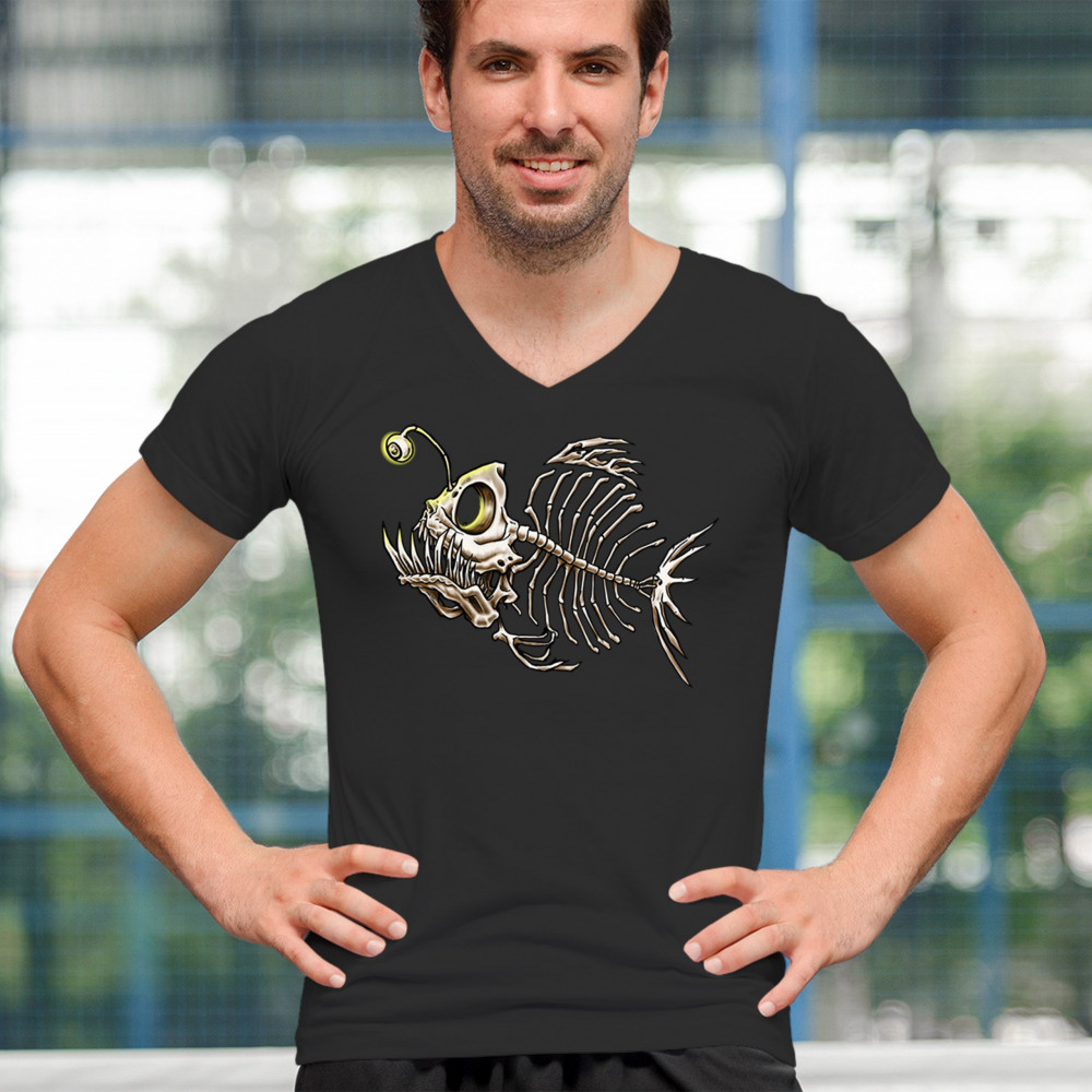 Creepy angler fish skeleton with glowing eye and horror bones. Perfect for sea lovers, divers, Halloween, and marine biology fans.