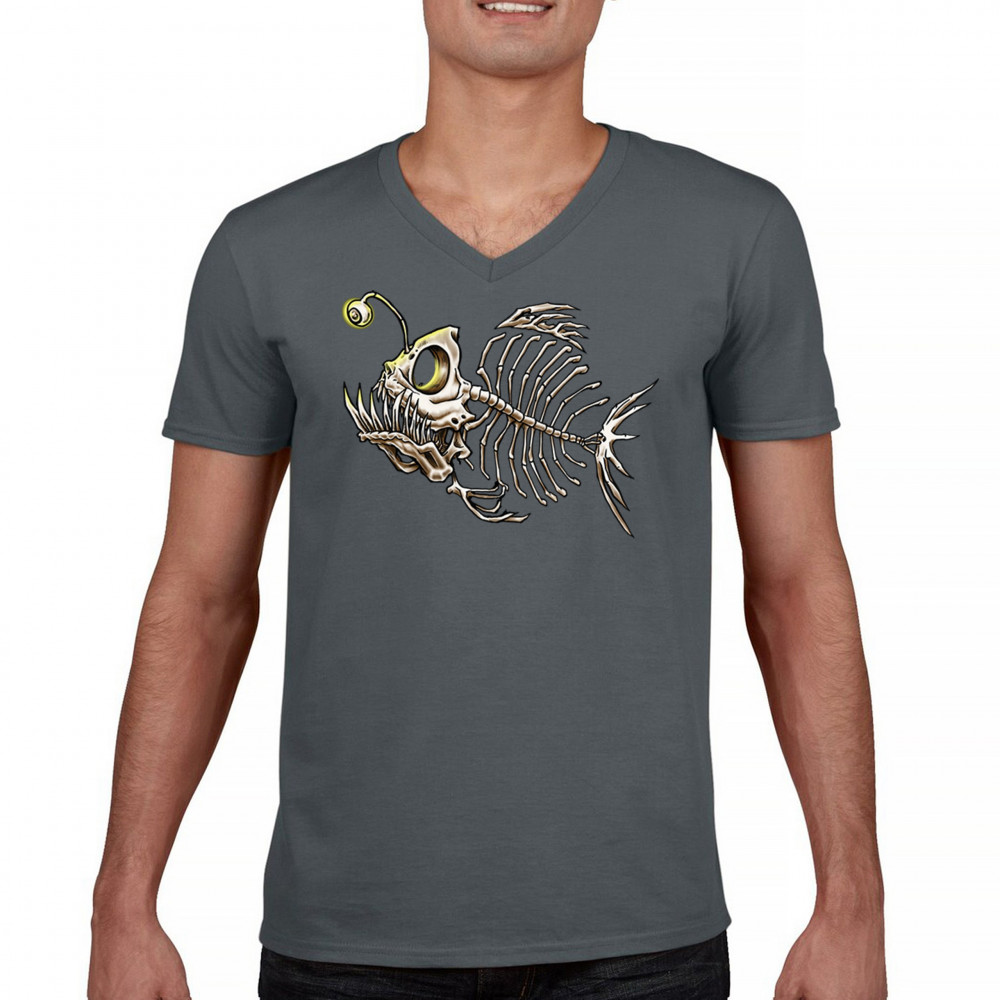 Creepy angler fish skeleton with glowing eye and horror bones. Perfect for sea lovers, divers, Halloween, and marine biology fans.