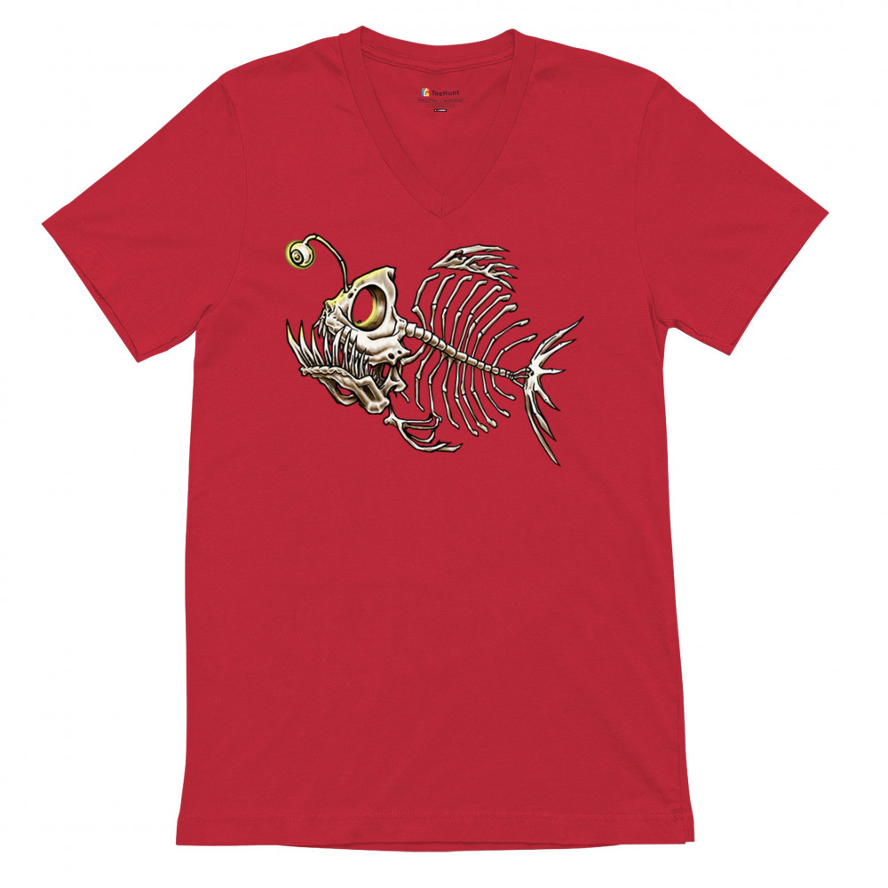 This highly detailed angler fish skeleton design features sharp bones, glowing lure eye, and deep sea terror aesthetic. Perfect for horror fans, marine biology lovers, and ocean adventurers, it combines underwater predator vibes with bone art flair. A great fit for Halloween, dive clubs, and dark sea aesthetics.
