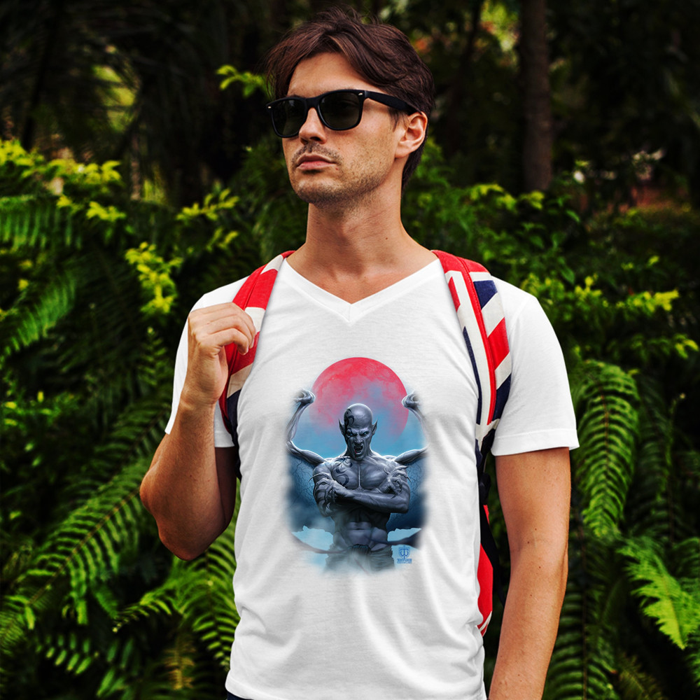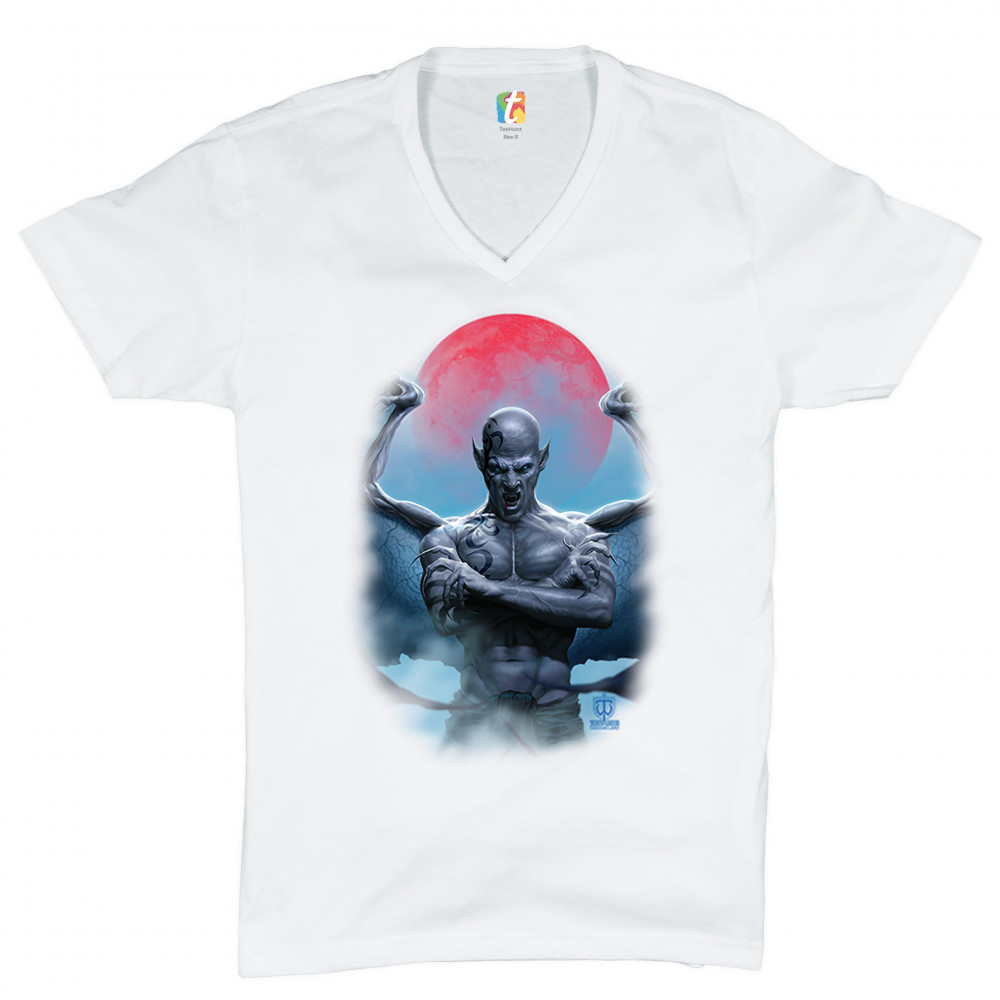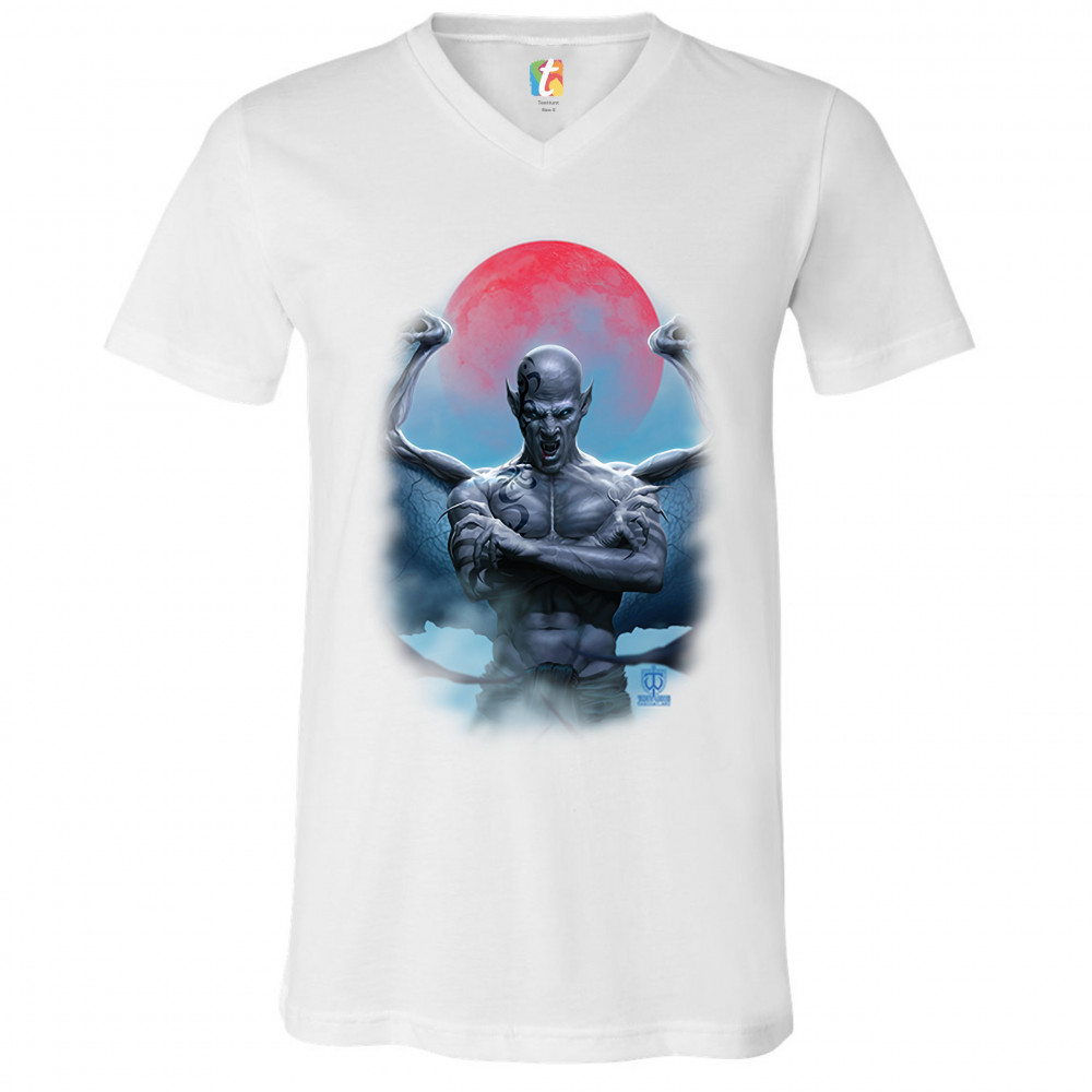 DEMON GARGOYLE v-neck t-shirt blood moon scary halloween monster tee white