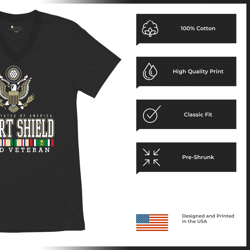 Wear your service with honor with our Desert Shield veteran design, a tribute to the valorous U.S. Army soldiers who stand for freedom, duty, and resilience.