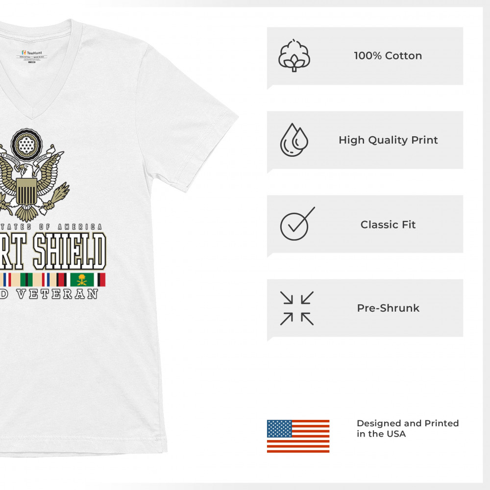 Wear your service with honor with our Desert Shield veteran design, a tribute to the valorous U.S. Army soldiers who stand for freedom, duty, and resilience.