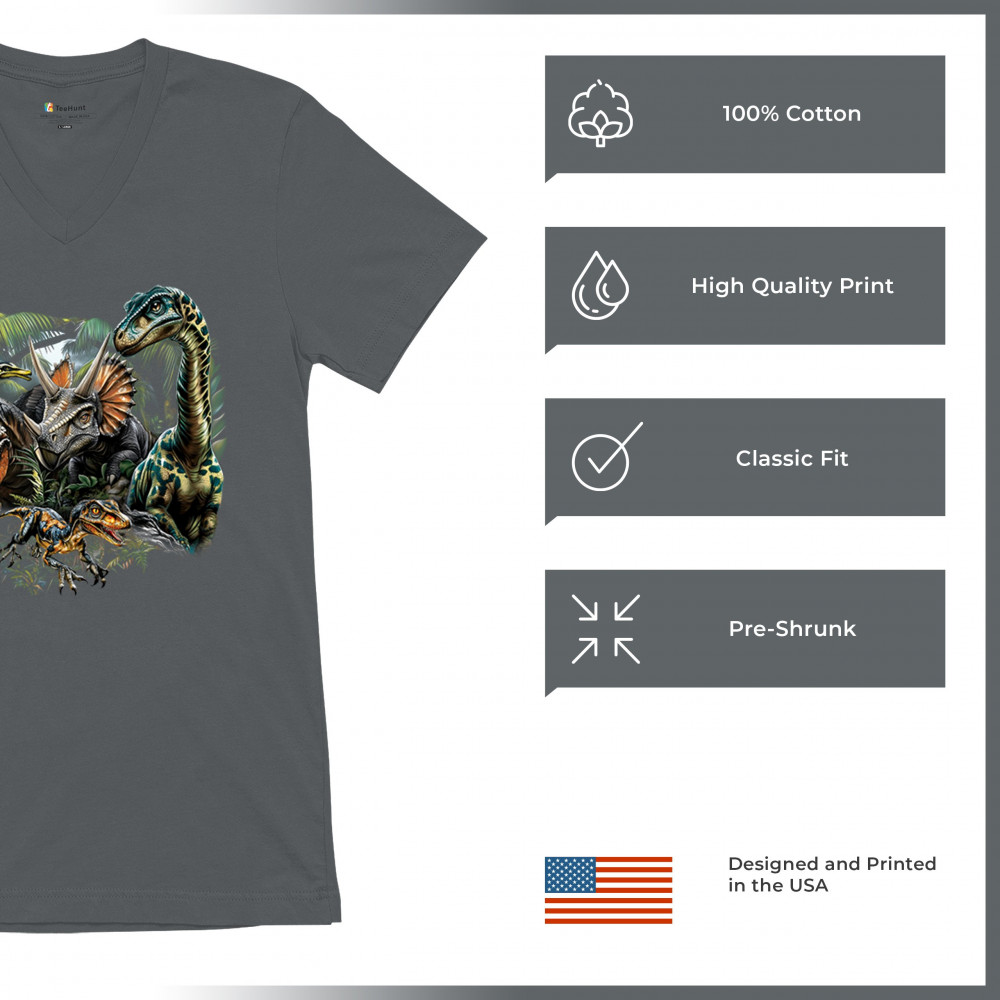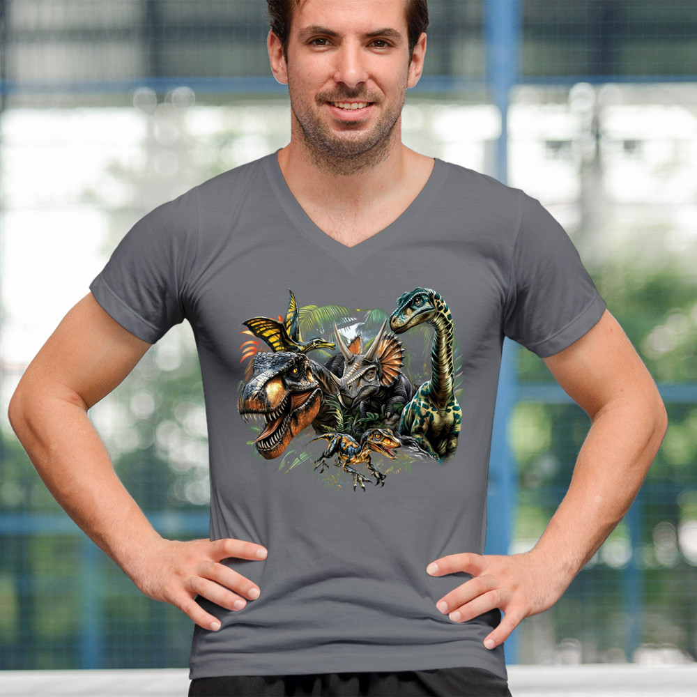 Get prehistoric with this electrifying design featuring a full dino squad in vibrant jungle detail. Includes t rex, triceratops, raptor, brachiosaurus, and pteranodon, all surrounded by tropical foliage. A perfect pick for dinosaur fans, fossil hunters, Jurassic birthday parties, or anyone who loves bold, wild, nature-themed art.