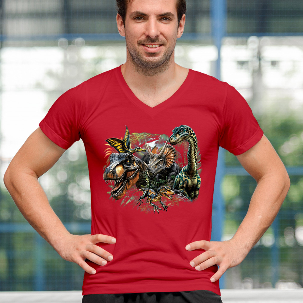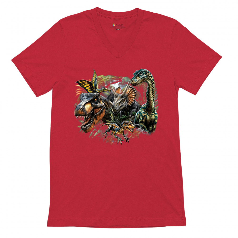 Get prehistoric with this electrifying design featuring a full dino squad in vibrant jungle detail. Includes t rex, triceratops, raptor, brachiosaurus, and pteranodon, all surrounded by tropical foliage. A perfect pick for dinosaur fans, fossil hunters, Jurassic birthday parties, or anyone who loves bold, wild, nature-themed art.