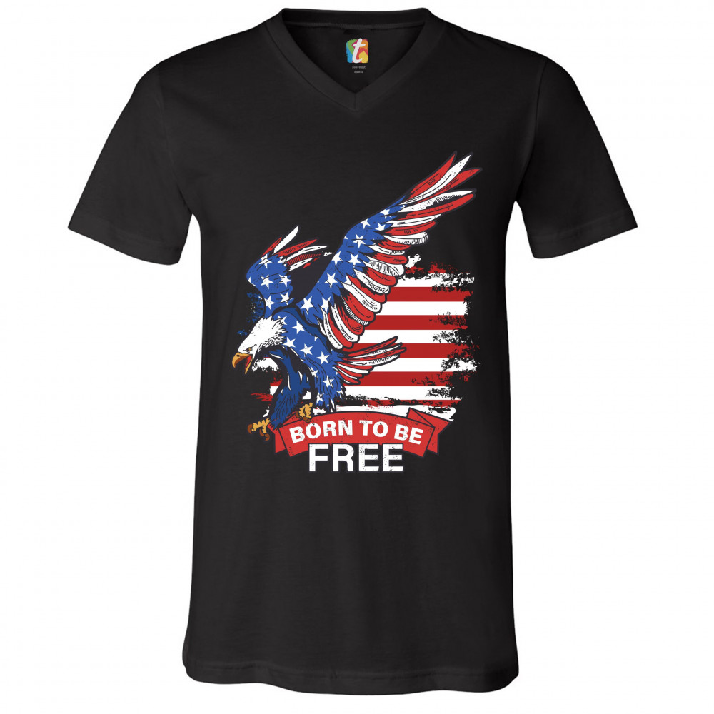 DIVING BALD EAGLE v-neck t-shirt born to be free american flag 4th of july tee black