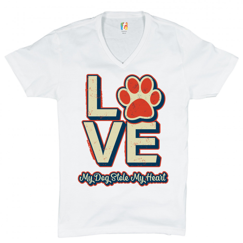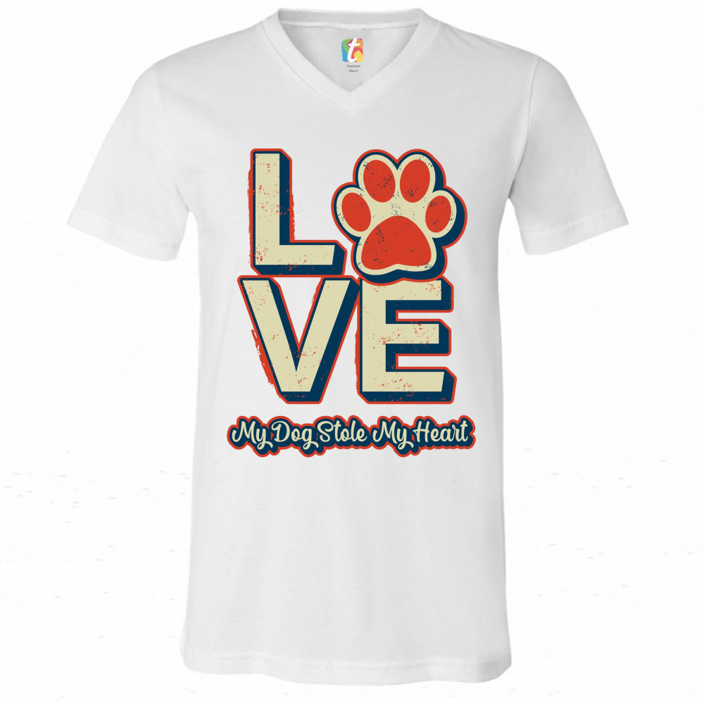 DOG PAW LOVE v-neck t-shirt my dog stole my heart pet owner animal lover tee white